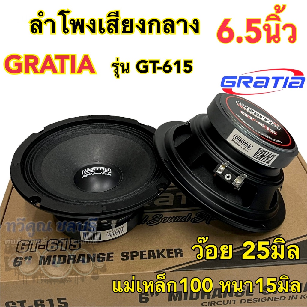 ลำโพงเสียงกลาง 6.5นิ้ว แบรนด์ GRATIA รุ่น GT-615 และ GT-620 แม่เหล็ก100หนา1 /20มิล สามารถเลือกได้📍 วอยซ์25มิล