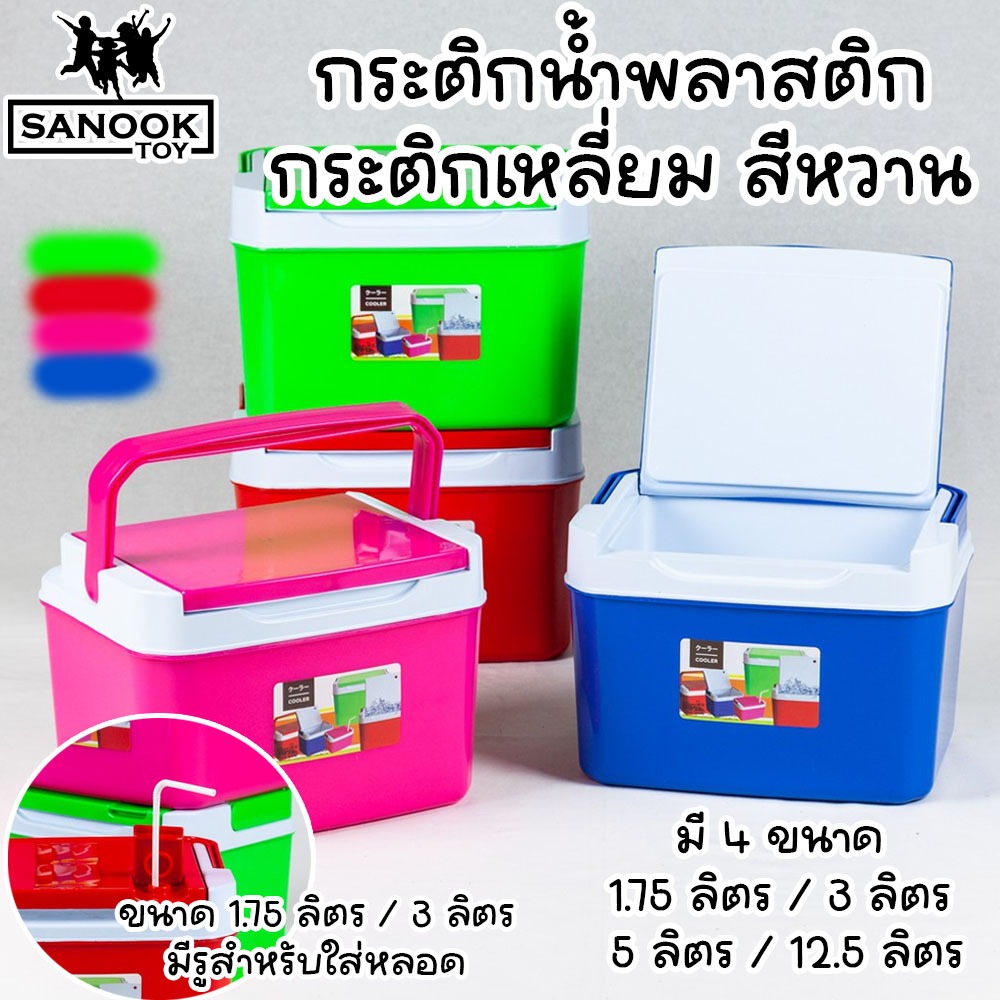 กระติกน้ำแข็ง (กระติกเหลี่ยม) สีหวาน มีหลายขนาดให้เลือก เก็บความเย็นได้นาน 5-6 ชั่วโมง
