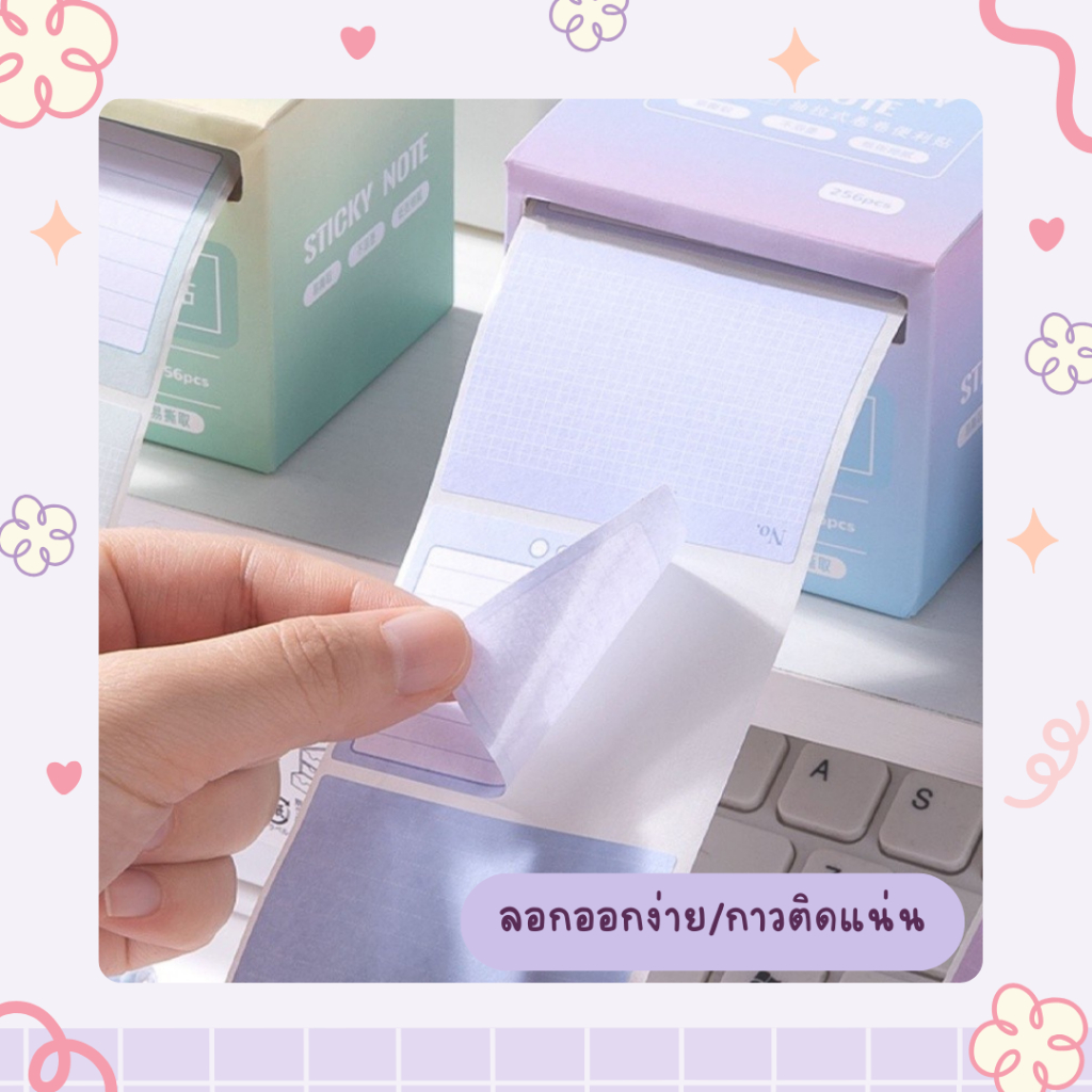 💜🐻กระดาษโน๊ตม้วน แบบสติกเกอร์ เขียนข้อความได้ ไล่โทนสี ฉีกได้ อเนกประสงค์ 256 ชิ้น อุปกรณ์การเรียน สำนักงาน