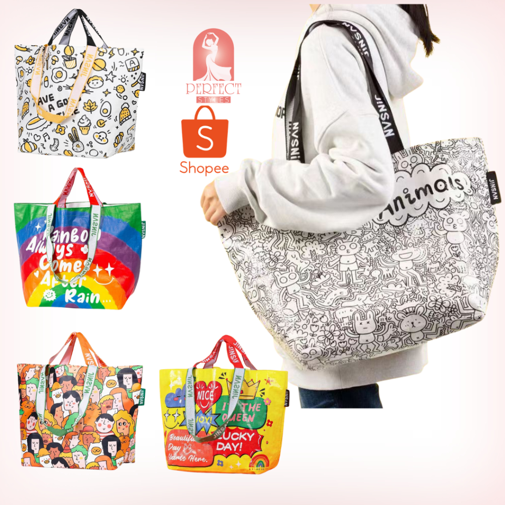 A004กระเป๋ากระสอบ กระเป๋าสะพายใหล่ กันน้ำ ใส่ของได้เยอะ แบบไม่มีกระดุม ถุงช้อปปิ้ง ลวดลายเยอะมาก