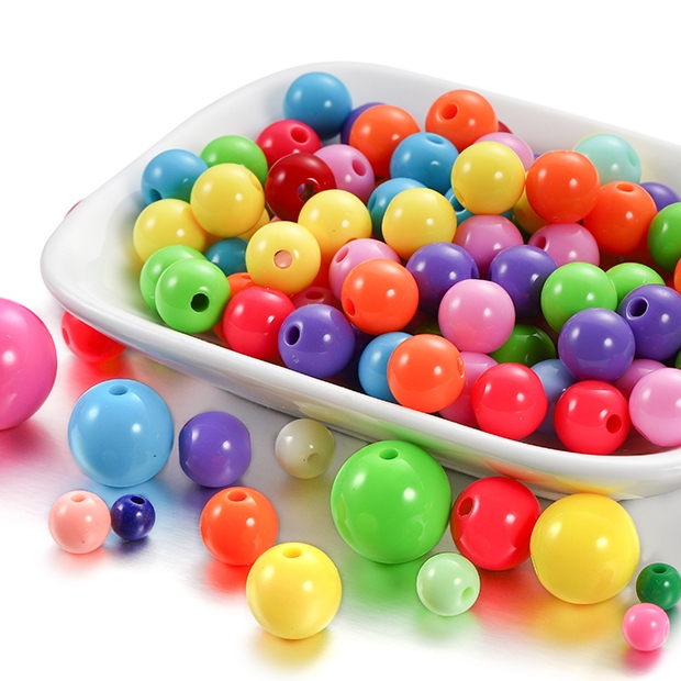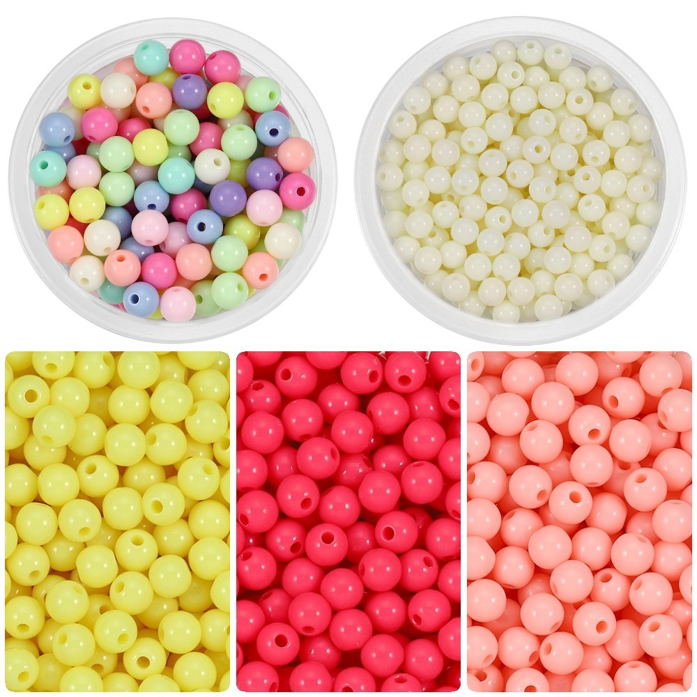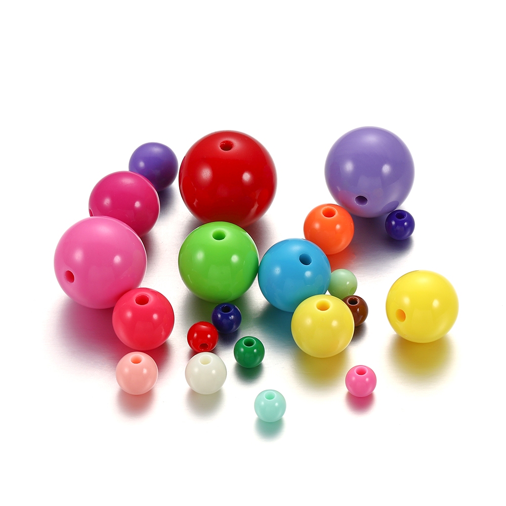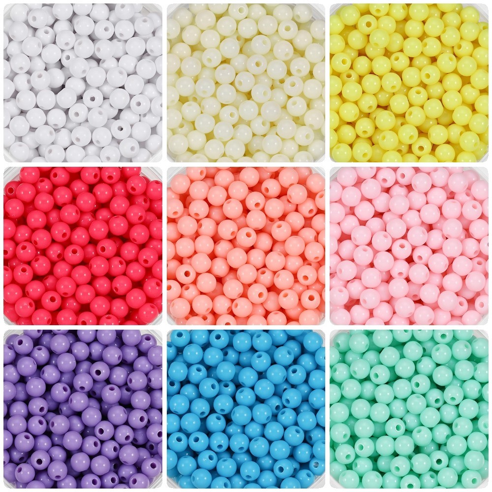 St.kunkka 50Pcs 6/8/10 มม.รอบลูกปัดอะคริลิคเรียบ ลูกปัดที่มีรู ลูกปัดพลาสติก DIY สร้อยคอลูกปัดเครื่องประดับ