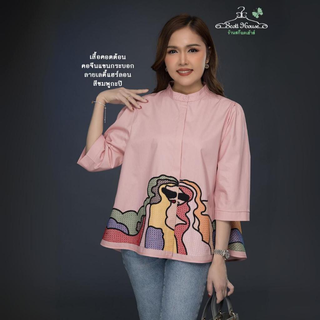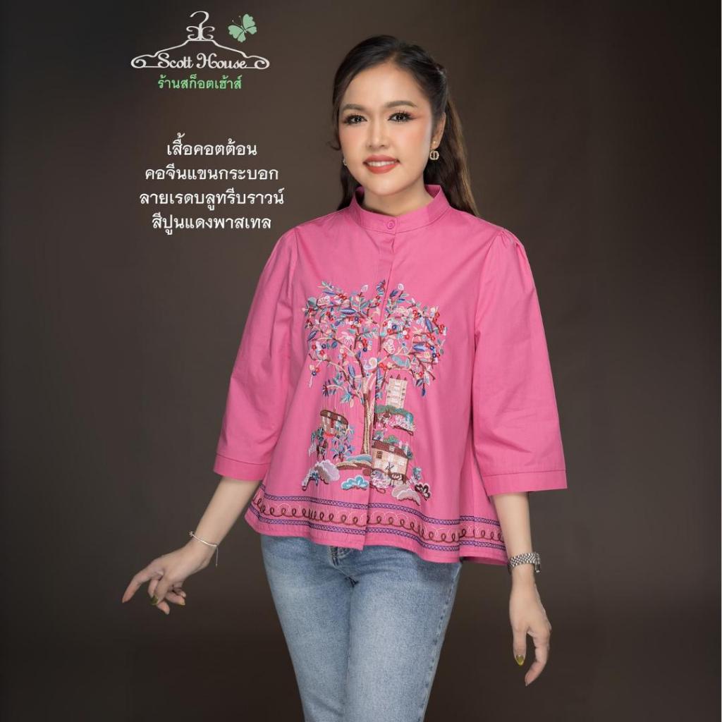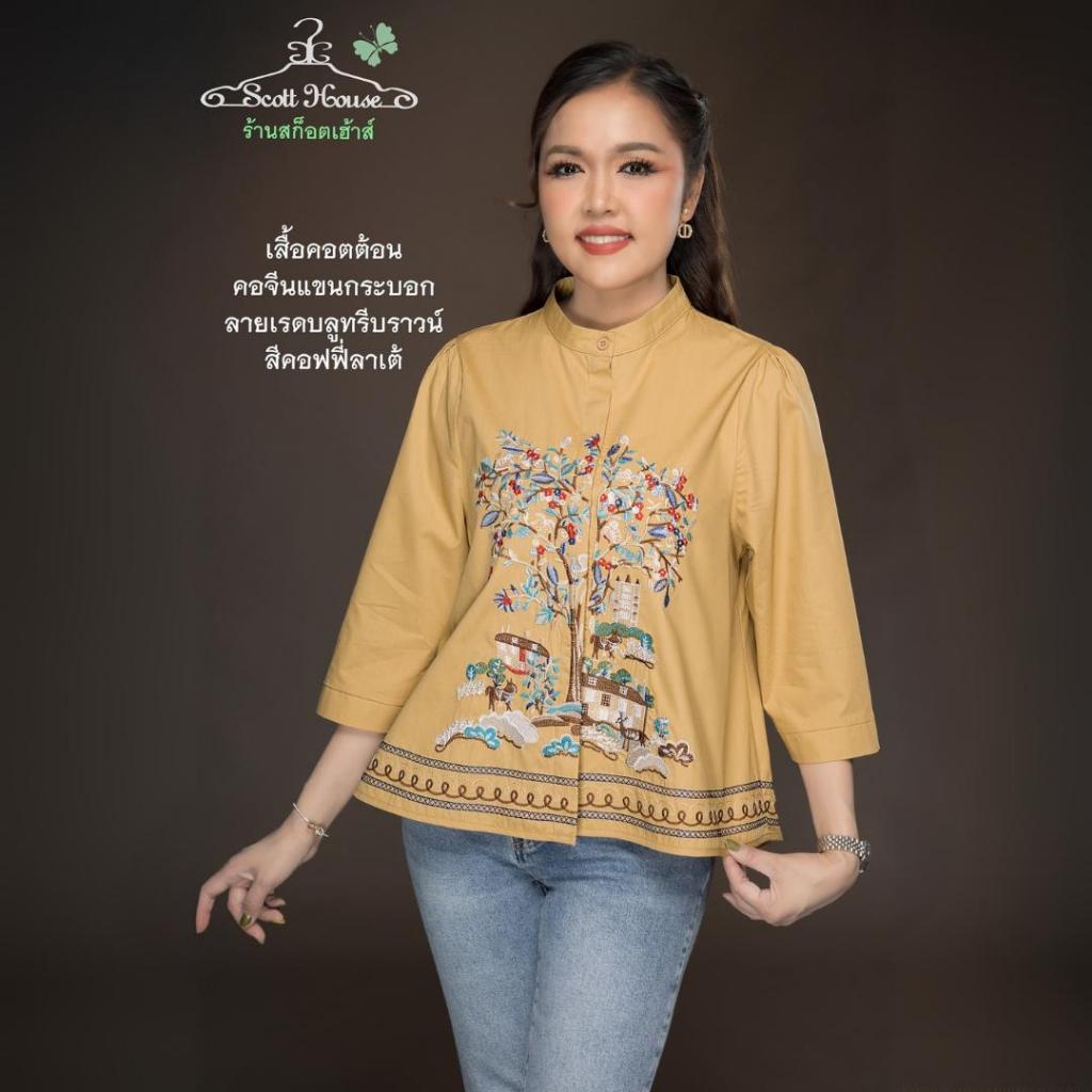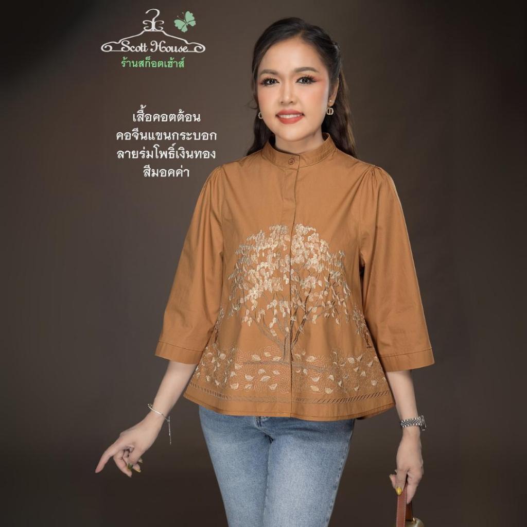 เสื้อคอตต้อนแท้100% รุ่นคอจีนแขนกระบอก