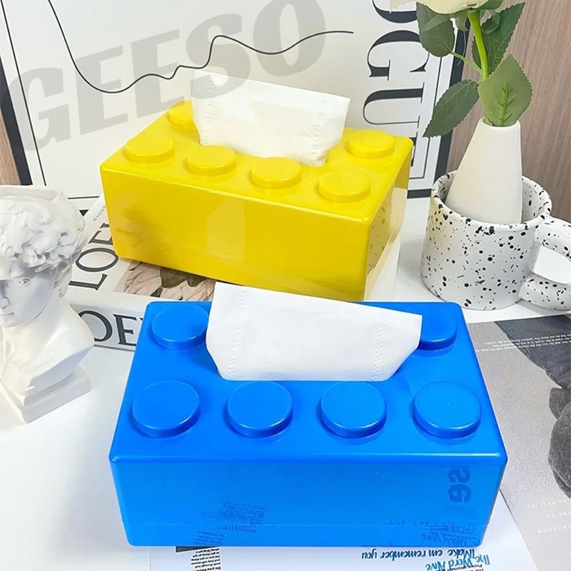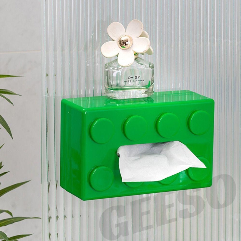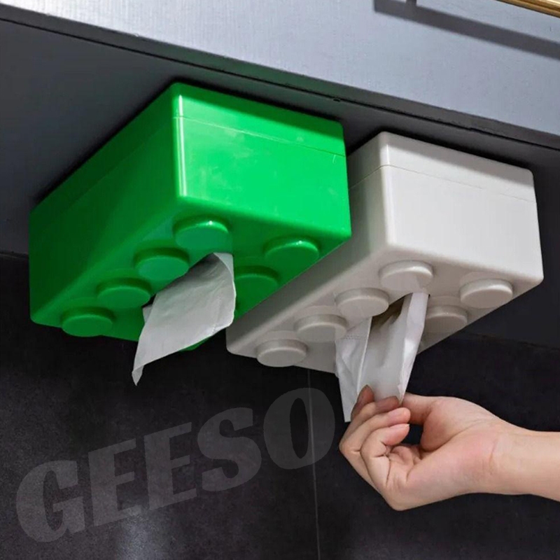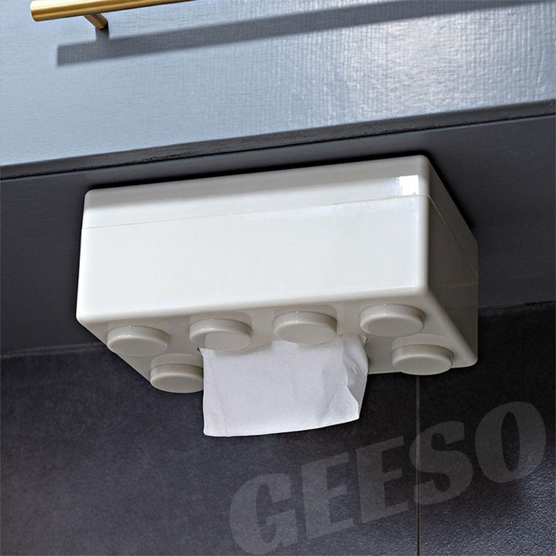 GEESO กล่องกระดาษทิชชู่รูปทรงบล็อคตัวต่อ ที่ใส่กระดาษแบบถอดได้สร้างสรรค์ ABS Creative Tissue Holder Building Blocks Built-in Spring Tissue Box Wall-Mounted Perforation-Free Paper Holder Paper Storage Box Paper Organizer