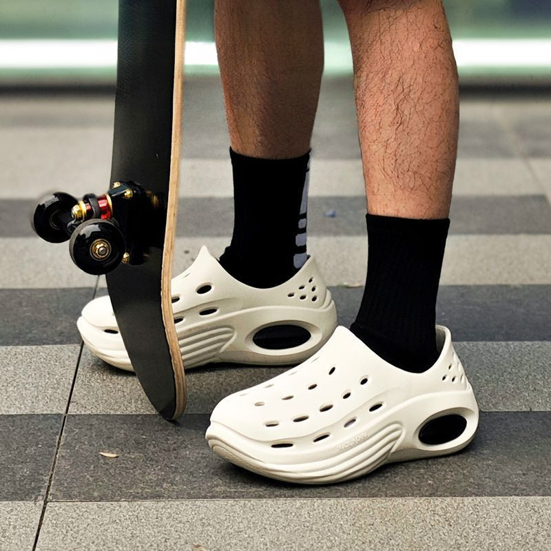 รองเท้าแตะหัวปิดสำหรับฤดูร้อนของผู้ชายสวมใส่ข้างนอกสำหรับเล่นกีฬารองเท้าแตะและรองเท้าแตะพื้นนุ่มระบายอากาศกันลื่นแบบลำลองวัสดุ EVA