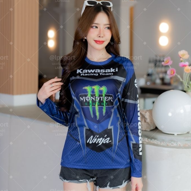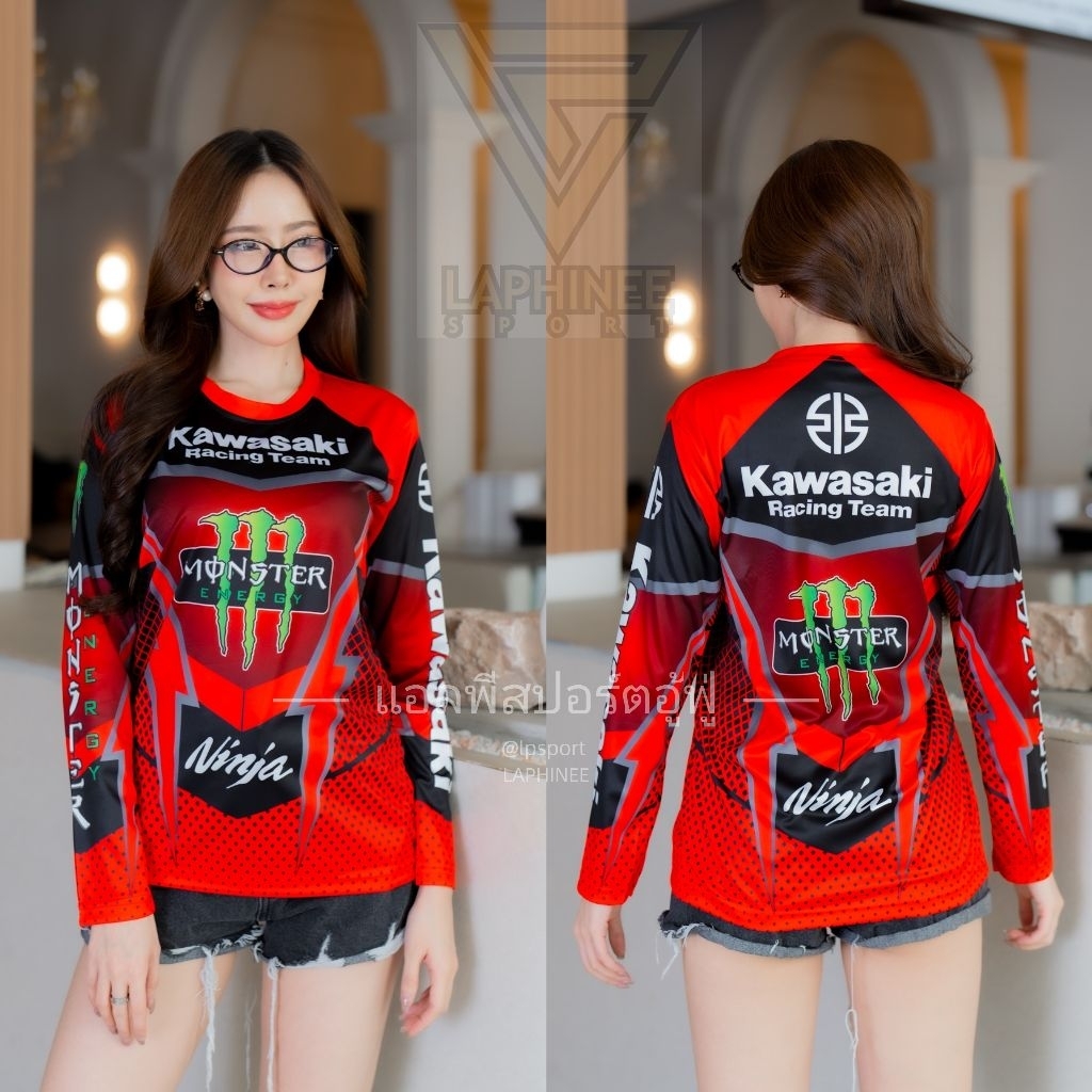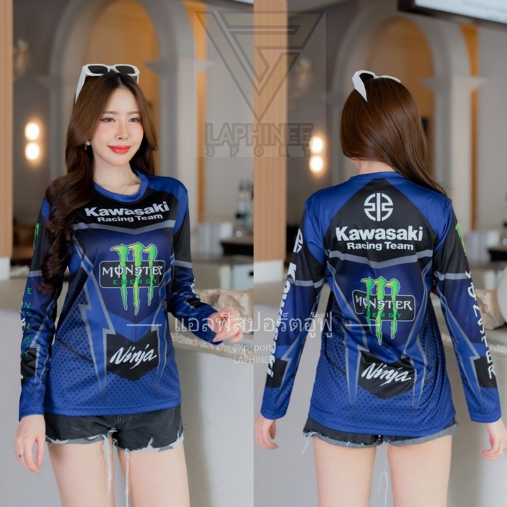 เสื้อ KAWASAKI เสื้อกีฬาแขนยาว ผ้าไมโครพิมพ์ลาย ไซส์ S-2XL ใส่ได้ทั้งชายและหญิง ผลิตโรงงานไทย