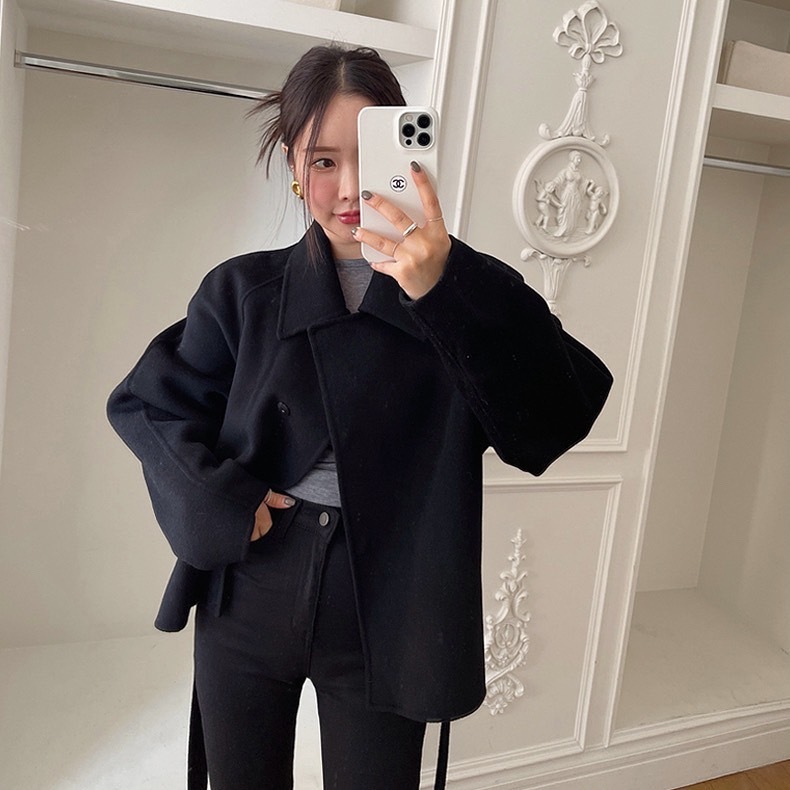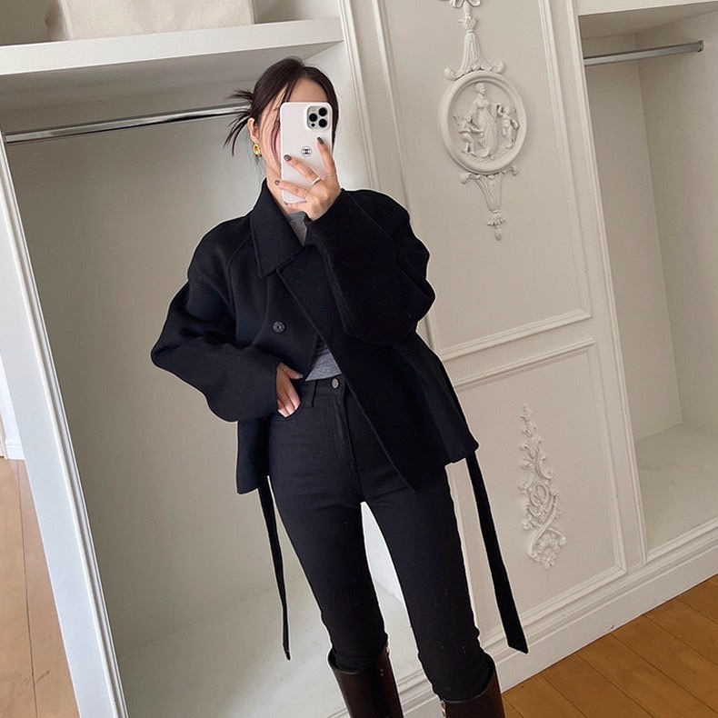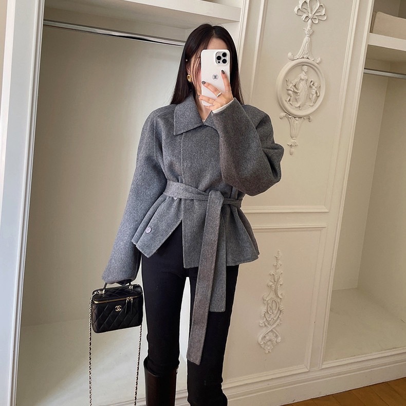 (C237) 🌷🍒 𝑭𝒖𝒌𝒖𝒐𝒌𝒂 𝑾𝒐𝒐𝒍 𝑪𝒐𝒂𝒕 🍁🍂 เสื้อโค้ทผ้าวูลทรงสั้น มาพร้อมผ้าผูกเอว พร้อมส่ง 2 สี