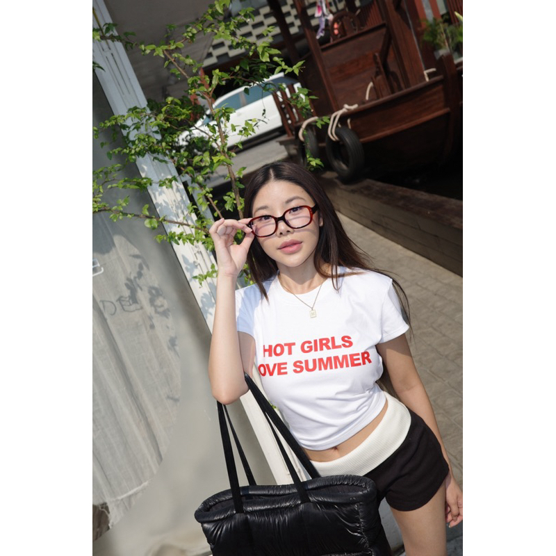 Resign.studio เสื้อยืด Baby tee - Hot girls