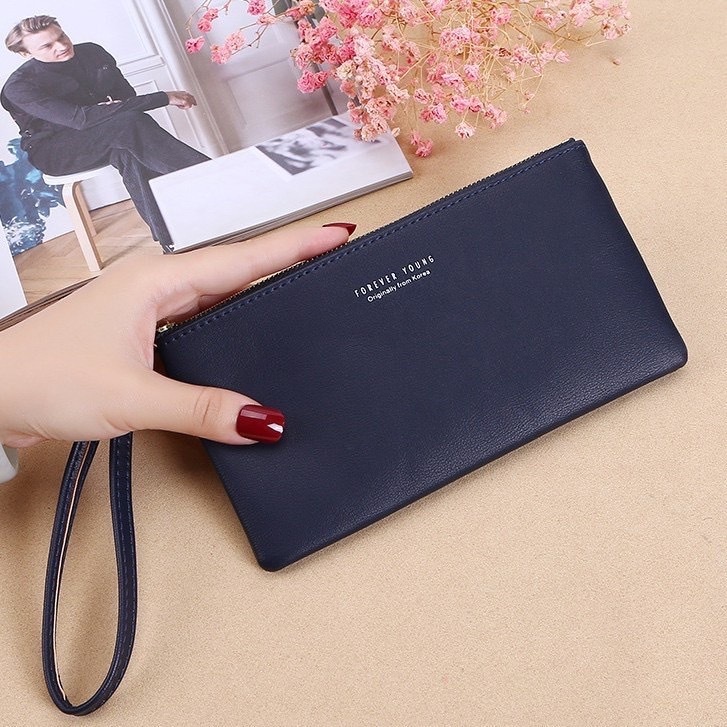 พร้อมส่ง ✅ กระเป๋าสตางค์แฟชั่น ข้อความ Forever Young ทรงใบยาว คุณภาพดี หนัง PU -- D8001