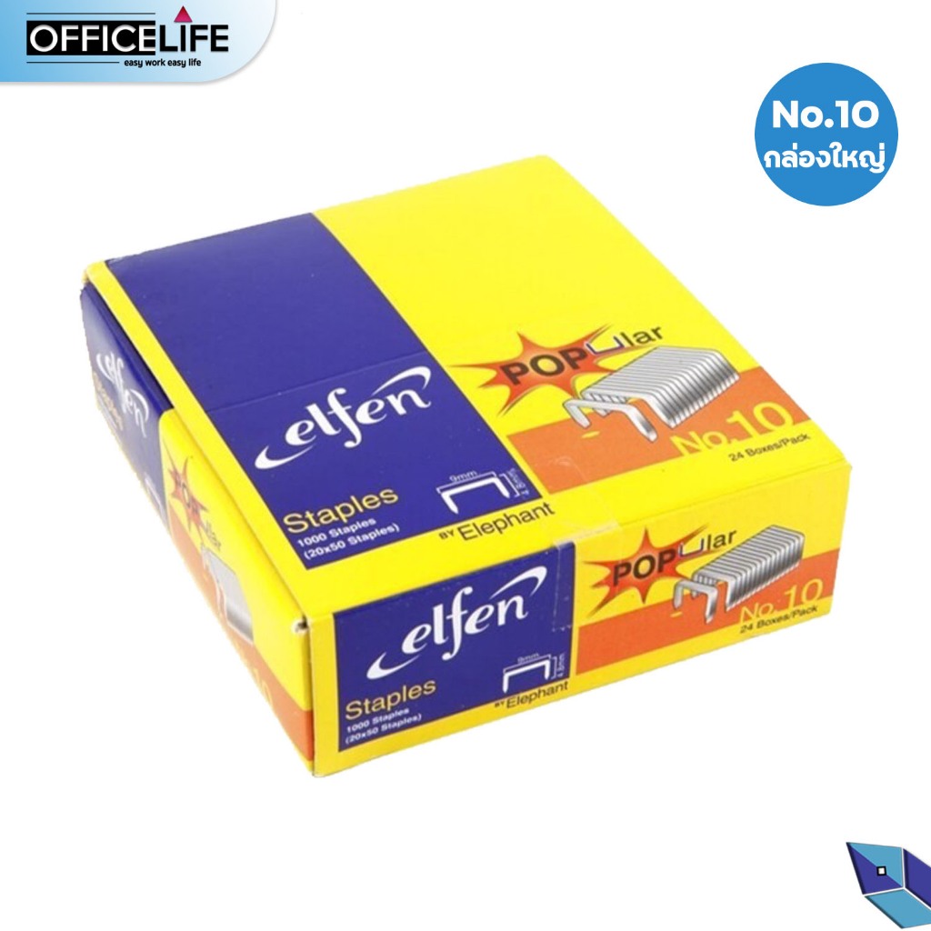 ELFEN ลวดเย็บ NO.10 และ NO.35 เย็บกระดาษ ลูกแม็ก รุ่น Popular elfen ของแท้ ( 1 กล่องใหญ่ มี 24 กล่องเล็ก )