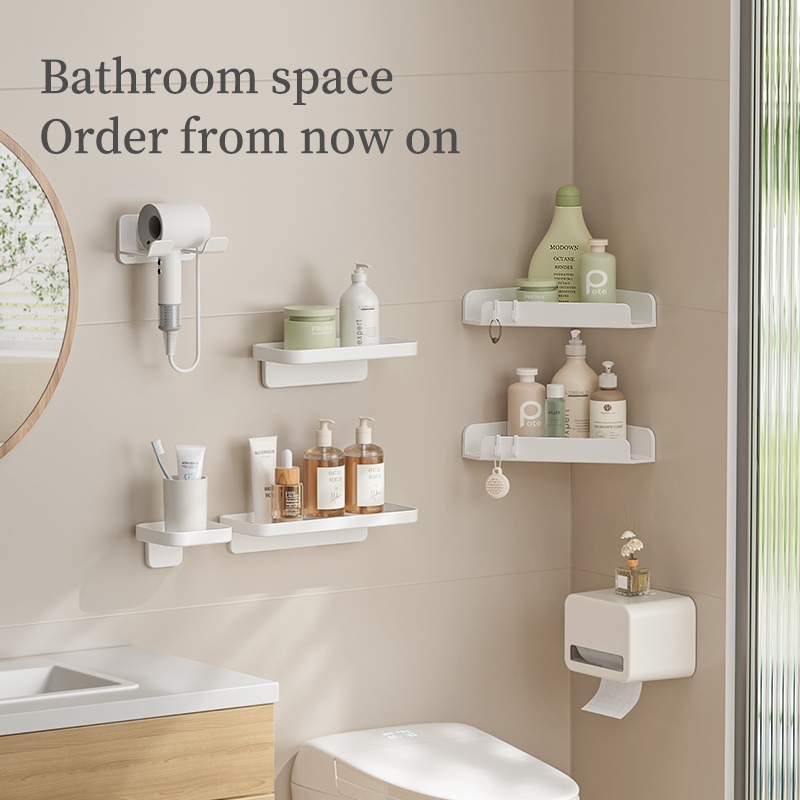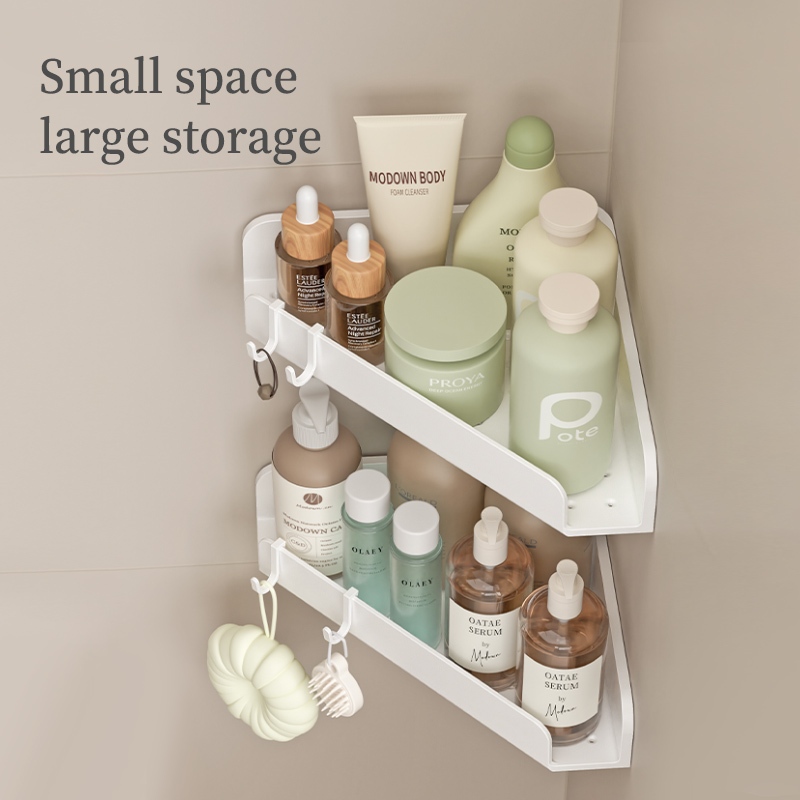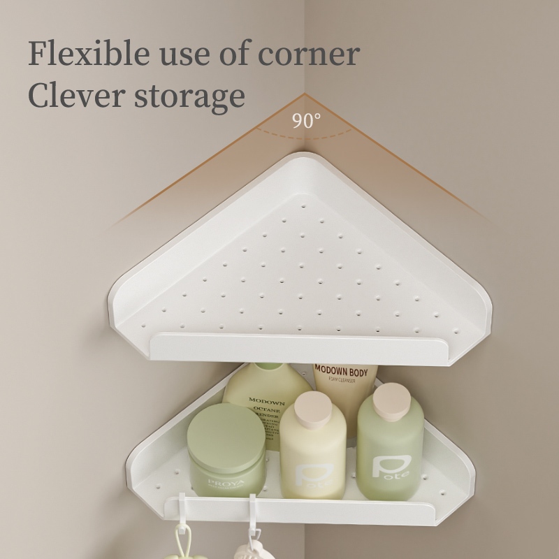 GONQIN ชั้นวางของในห้องน้ํา ชั้นวางเข้ามุม ตัวยึดติดผนังแบบไม่เจาะรู ชั้นวางของสามเหลี่ยม ชั้นวางติดผนัง