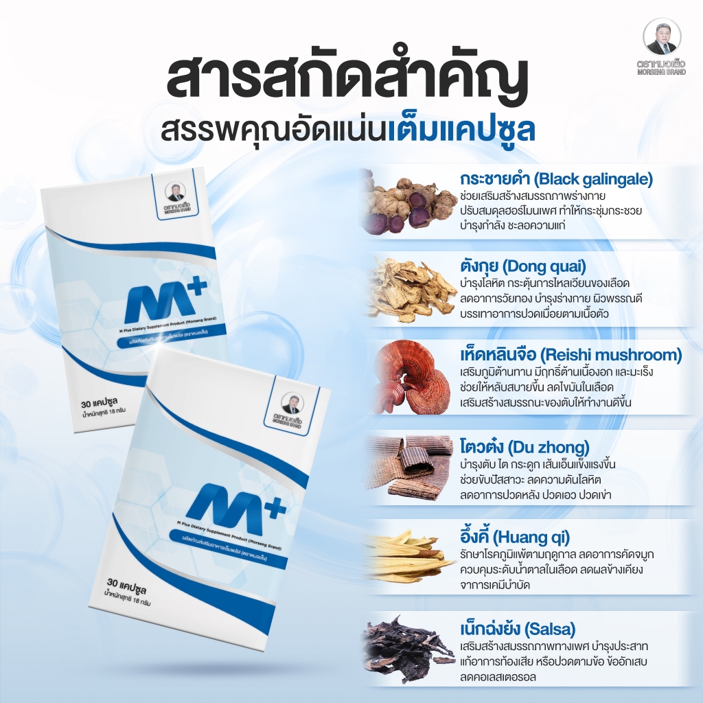 สมุนไพรหมอเส็ง - เอ็มพลัส Mplus (กระชายดำ,เห็ดหลืนจือ) 30 แคปซูล -ของแท้100%