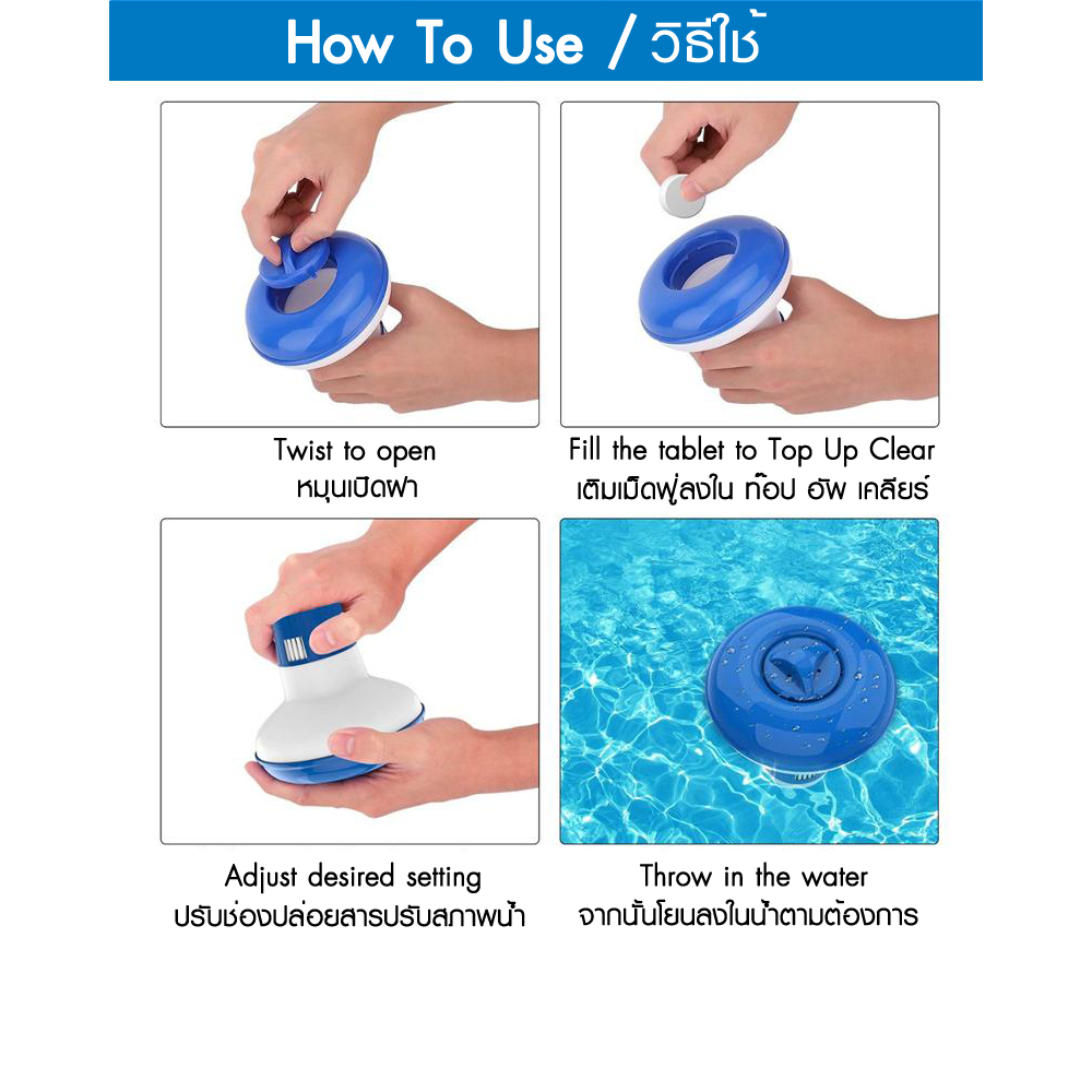 ชุด ทุ่นลอยสระน้ำ + เม็ดฟู่ 15g สำหรับ สระว่ายน้ำ สระเป่าลม สระผ้าใบ สระยางขนาด 1000-50,000 ลิตร