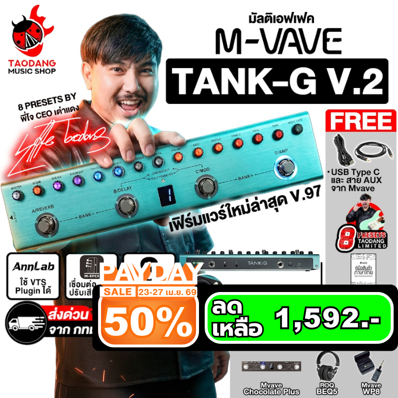 ส่วนลด 1,000.- MAX, M-Vave Tank-G V2 มัลติเอฟเฟค M-Vave Tank G TankG V2 Multi Effects ประกันศูนย์ไทย