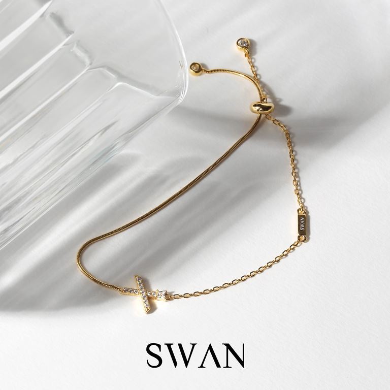 [ส่งด่วนฟรี]SWAN - Alphabet Bracelet สร้อยข้อมือเงินแท้ ฝังเพชร cubic zirconia