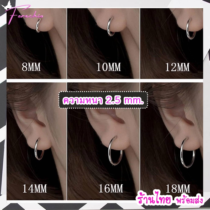 ร้านไทย🇹🇭 พร้อมส่ง ต่างหูห่วง ทรงกลม สีเงิน สแตนเลสแท้ เครื่องประดับ สำหรับผู้ชายและผู้หญิง - 1 ข้าง