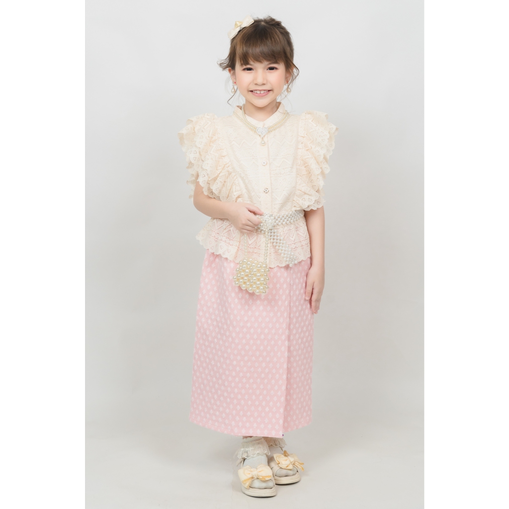 BS007 ชุดไทยประยุกต์เสื้อลูกไม้พร้อมผ้าถุง แม่และลูกชุดเซ็ท