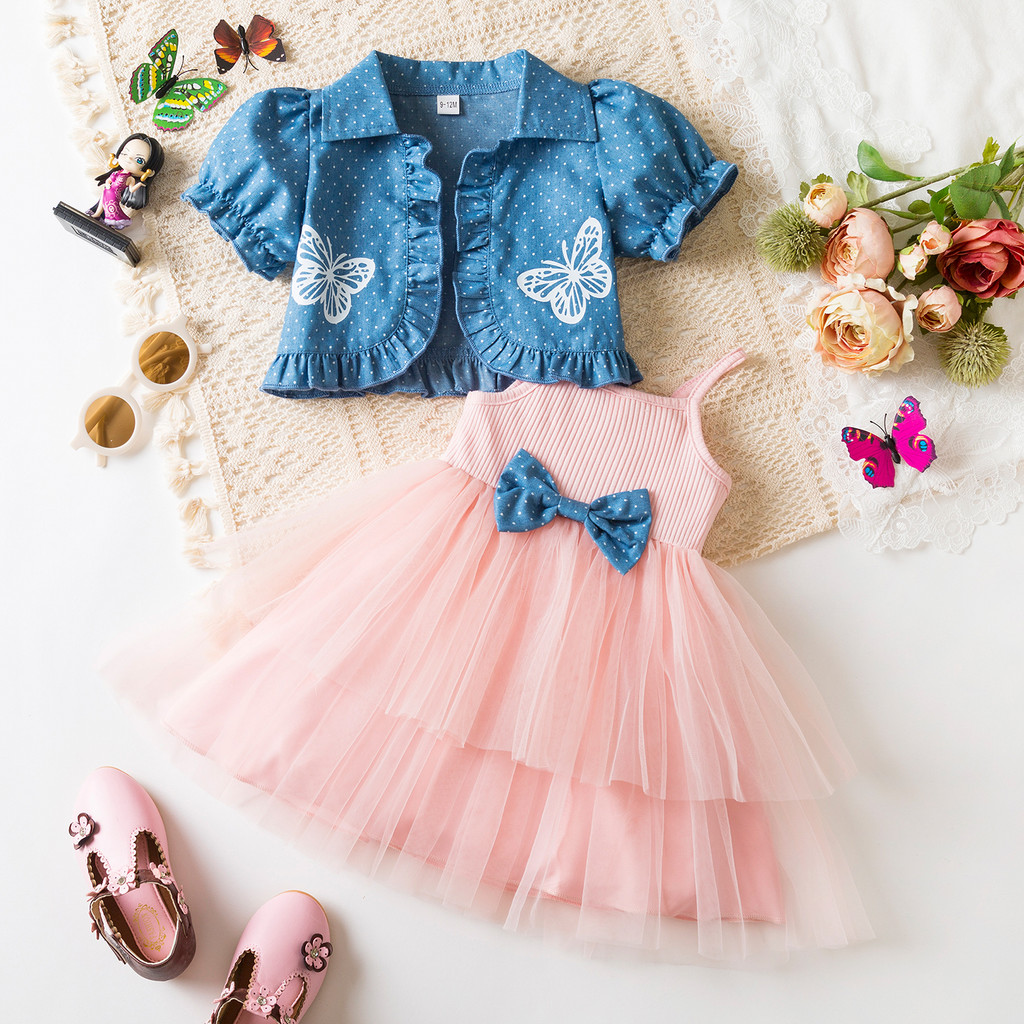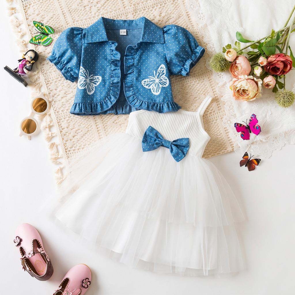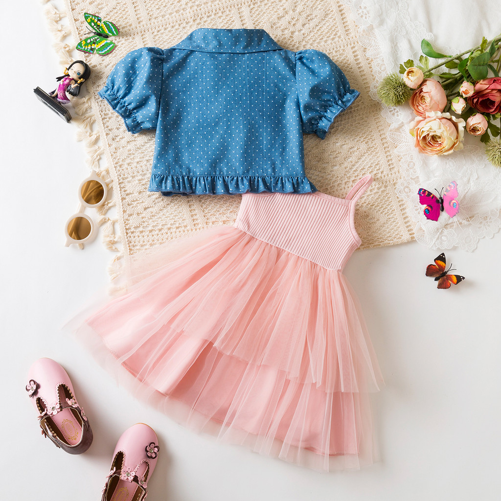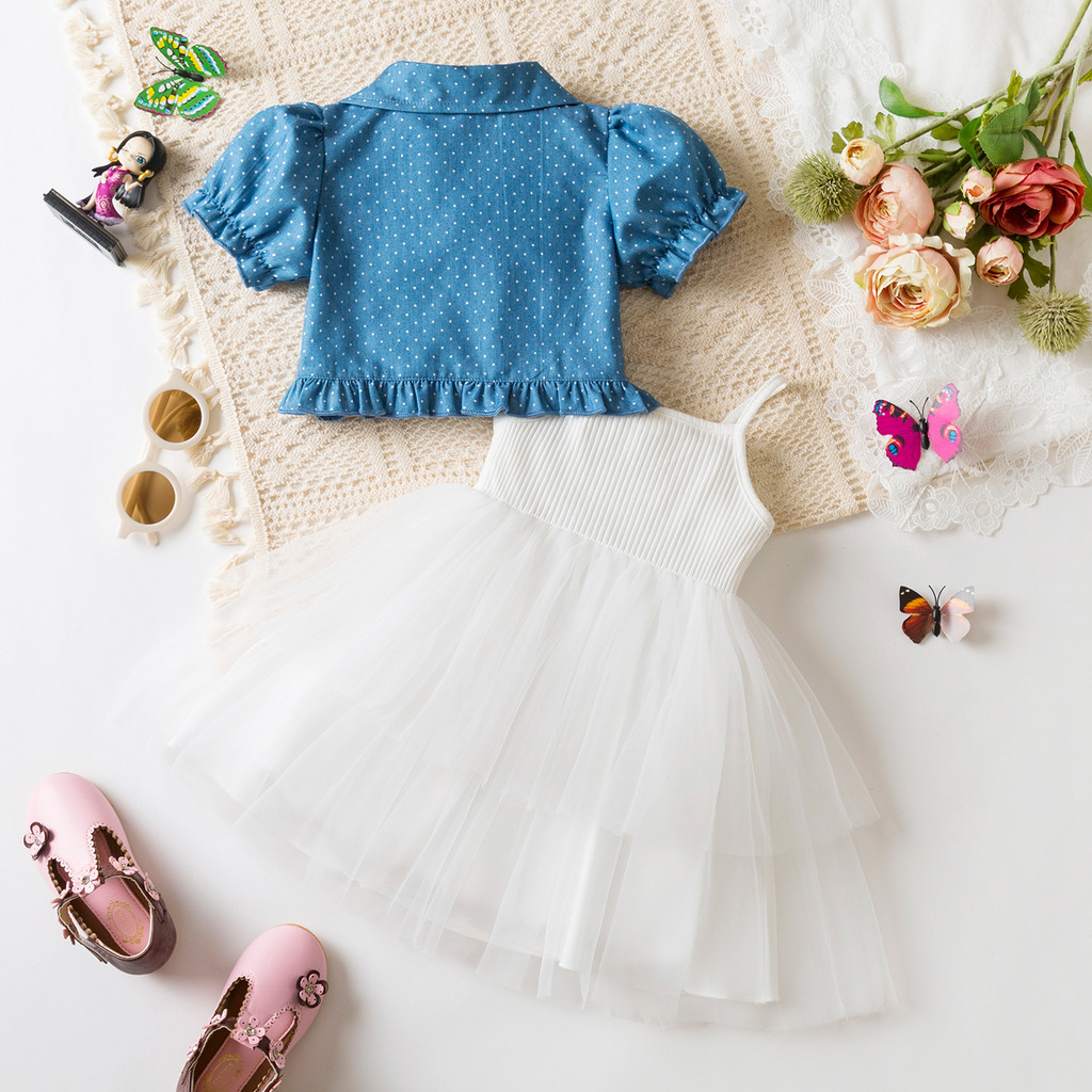 Nnjxd เด็กทารกเจ้าหญิง Suspenders Tulle ชุดโบว์แขนสั้น Polka Dot Coat 2 ชิ้นชุด 9m-3Y ชุดเด็กใหม่