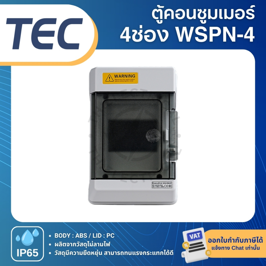 TEC WSPN ตู้พลาสติกกันน้ำ IP65 Consumer ตู้คอนซูมเมอร์กันน้ำ 4ช่อง 6ช่อง 9ช่อง 12ช่อง 15ช่อง 18ช่อง 24ช่อง