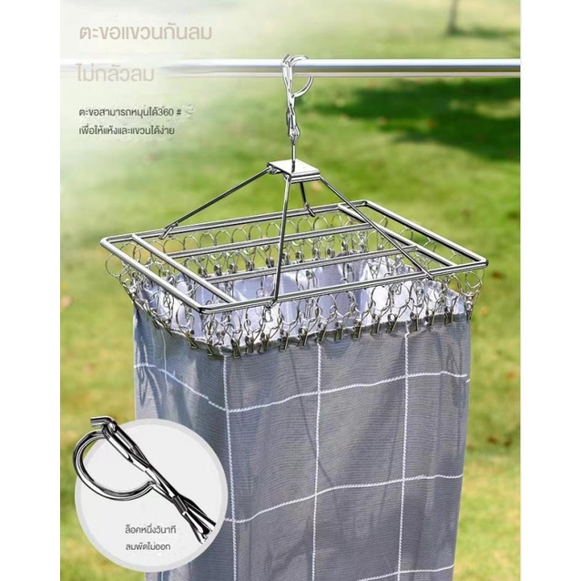 ไม่ขึ้นสนิม ราวหนีบผ้าสแตนเลส40/30 ราวตากผ้าเหล็ก ไม้แขวนเสื้อ แบบเหลี่ยม หมุนได้รอบ360องศา ตัวหนีบแข็งแรง แข็งแรงทนทาน
