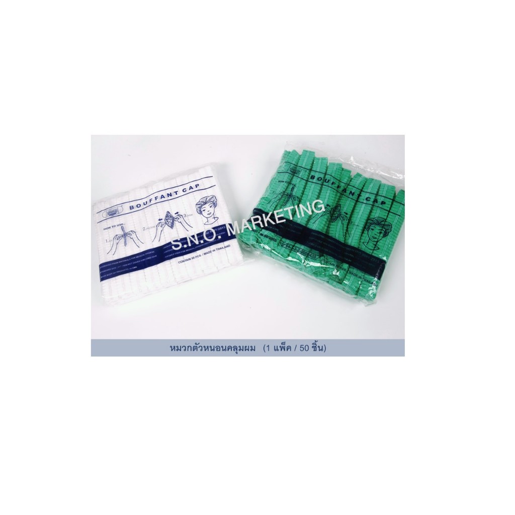 หมวกตัวหนอน หมวกคลุมผม ยี่ห้อ Bouffant cap (1 แพ็ค / 50 ชิ้น)
