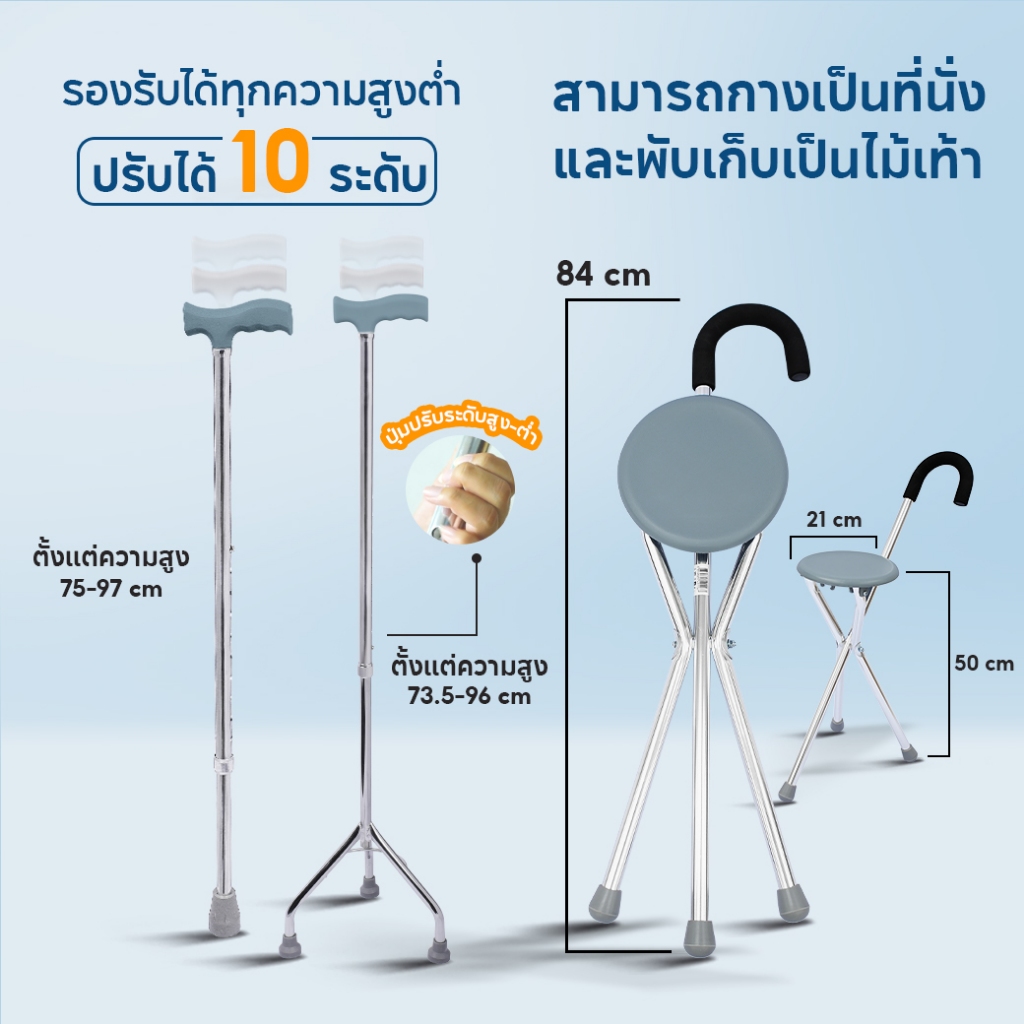YAMADA ไม้เท้าช่วยเดิน อลูมิเนียม ปรับได้10 ระดับ รองรับน้ำหนัก100 กิโลกรัม