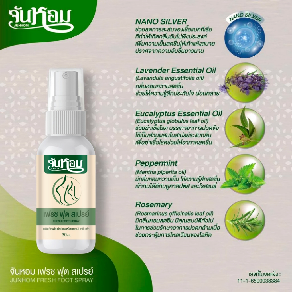 จันหอม โปร 6 แถม 6 สเปรย์ดับกลิ่นเท้า Junhom ลดกลิ่นเท้า ปราศจากความอับชื้นยาวนาน