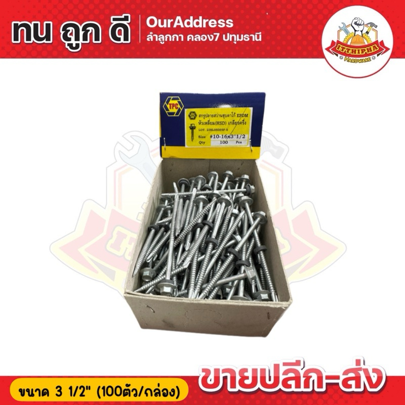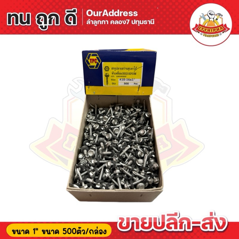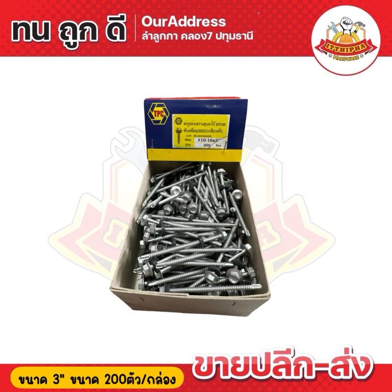 สกรูปลายสว่านหัวเหลี่ยมชุบดาโก้ สกรูยึดหลังคาเมทัลซีทชุบดาโก้ HSD (น้อตเบอร์10) TPC