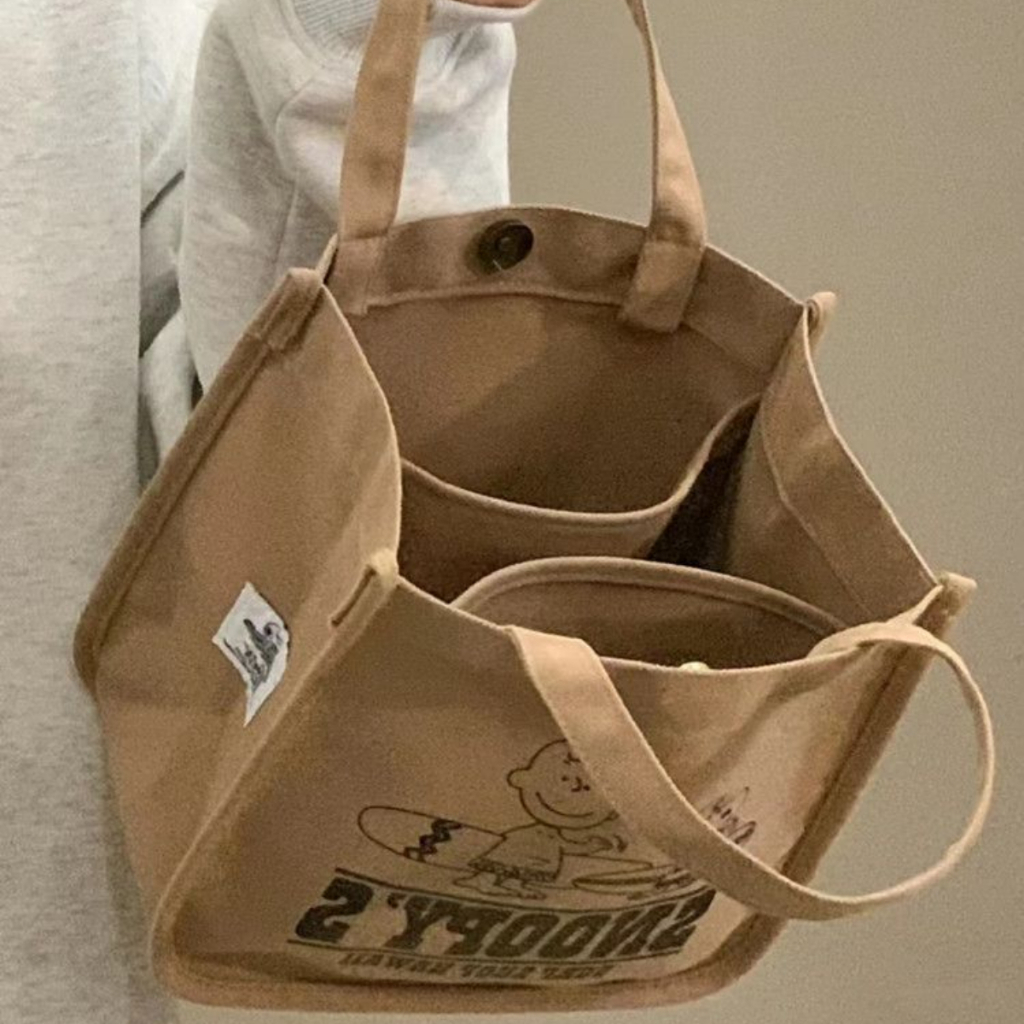 ใหม่ กระเป๋าผ้าแคนวาส ทรงโท้ท อเนกประสงค์ ลายการ์ตูน Snoopy จุของได้เยอะ แบบพกพา 2024