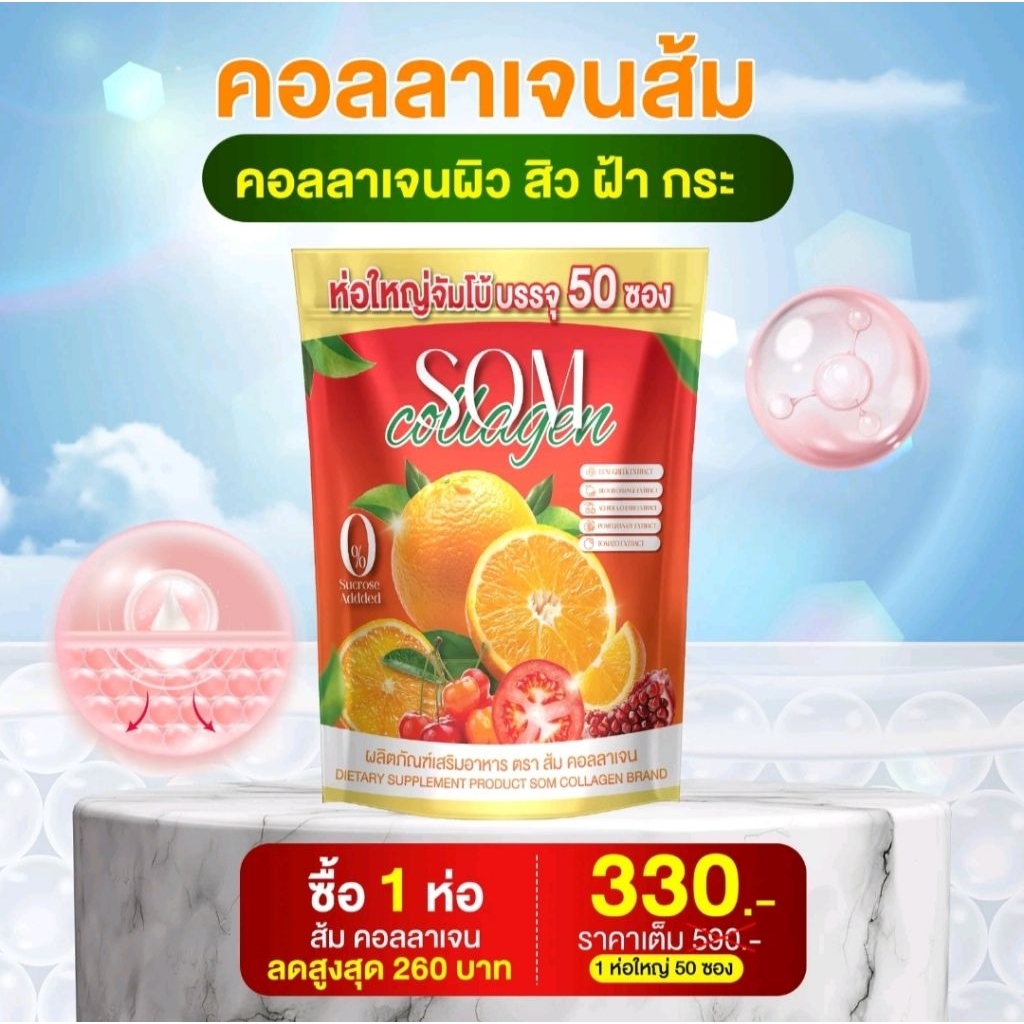 SOMคอลลาเจน (50ซอง)ขนาด10กรัมของแท้ A3