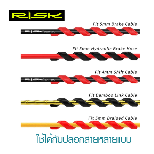 RISK ปลอกยางหุ้มสายเบรค-สายเกียร์ ป้องกันรอยขีดข่วน แบบเกลียวสำหรับจักรยาน แพ็ค 5 ชิ้น