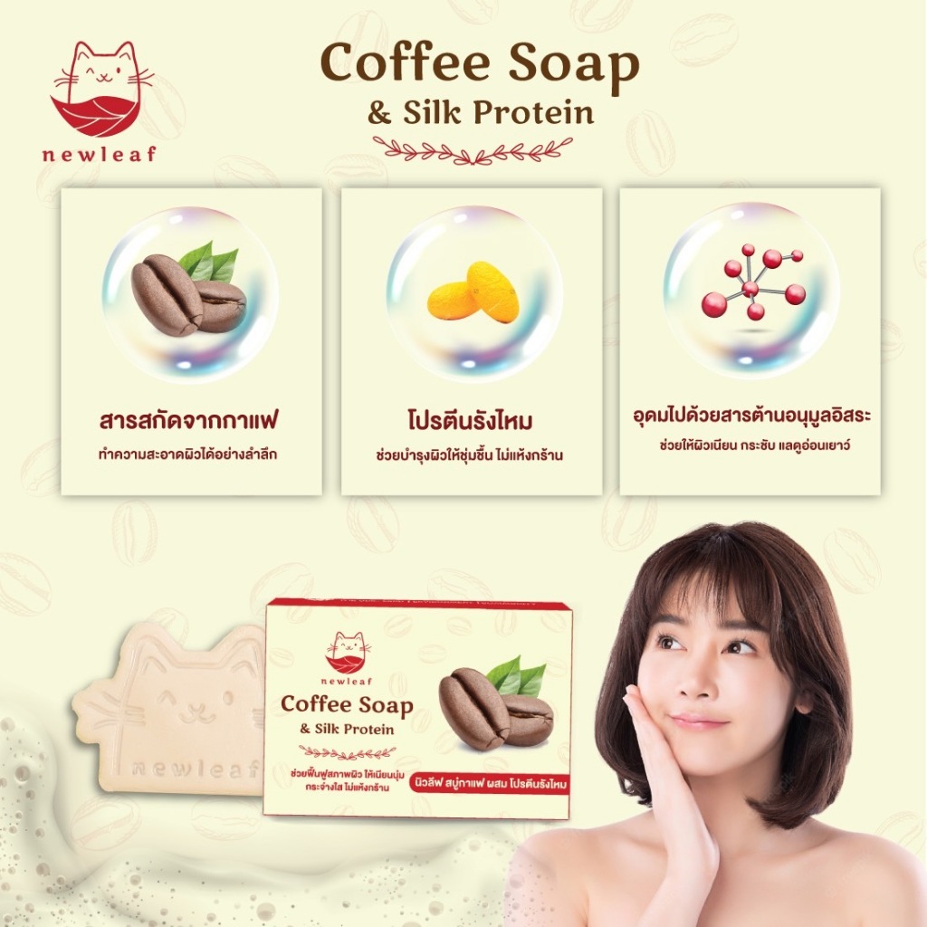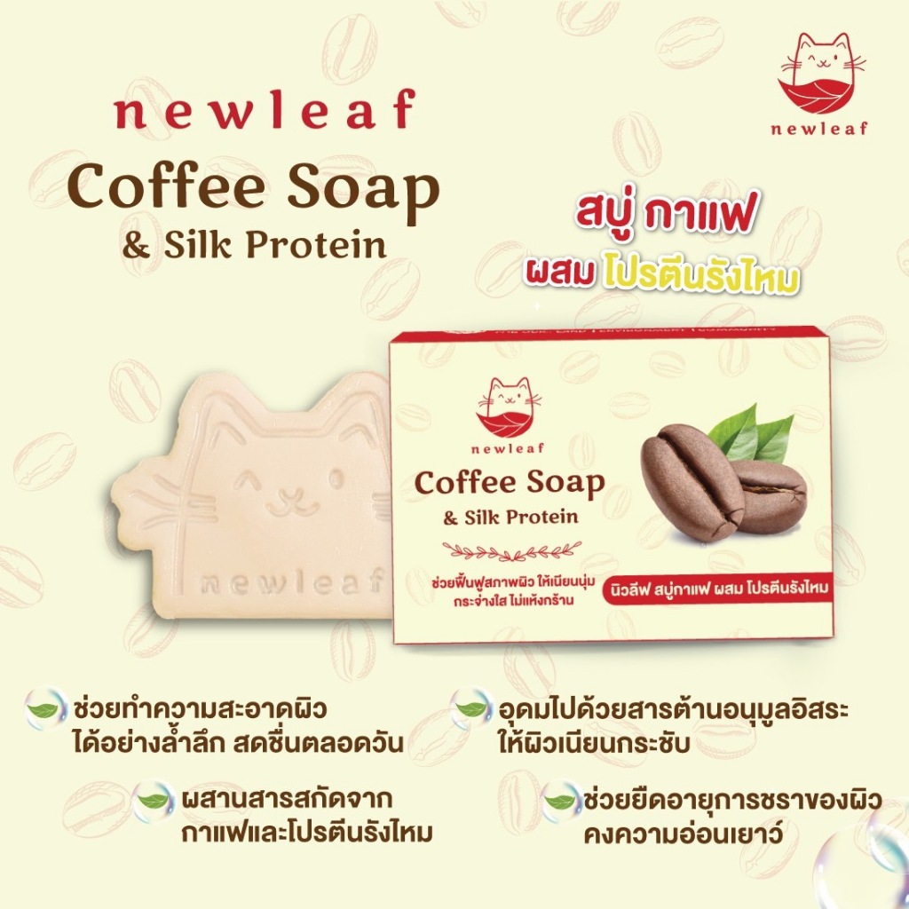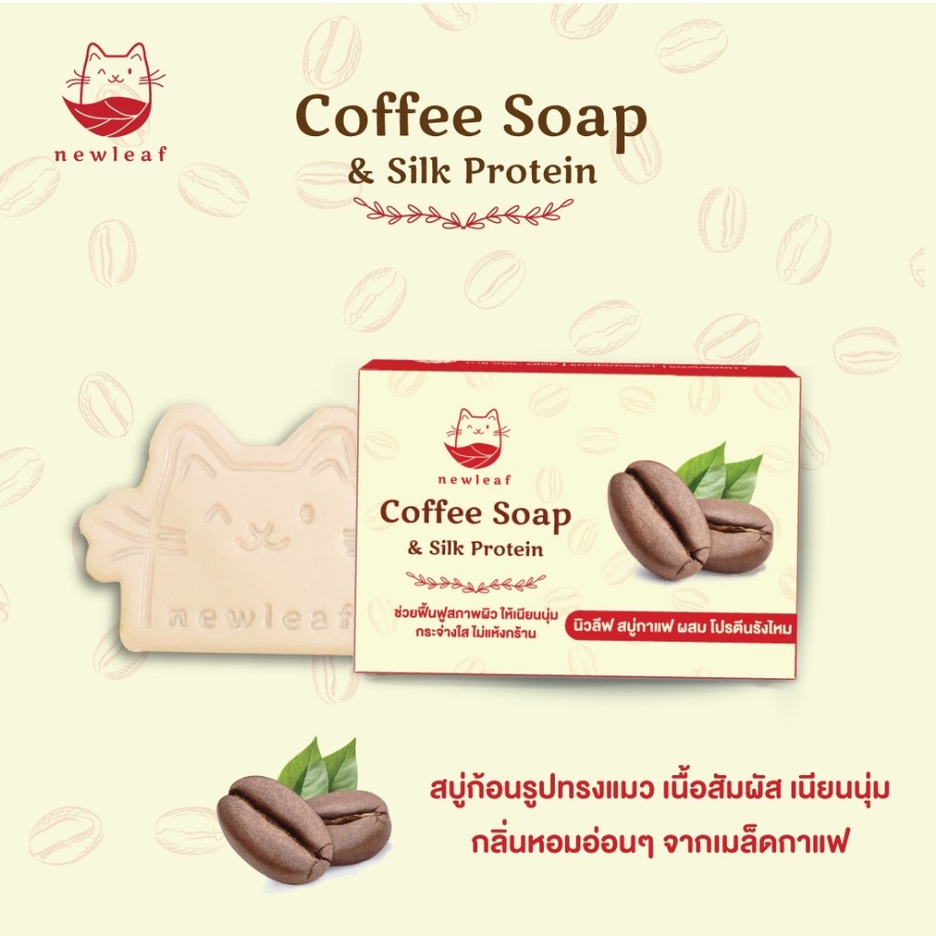 สบู่นิวลีฟ New Leaf Soap สบู่กาแฟ (90g.) สูตรลับโปรตีนรังไหมทองคำ กลิ่นหอม ล้างหน้าลดสิว อาบน้ำผิวขาว ลดกลิ่นกาย ถนอมผิว