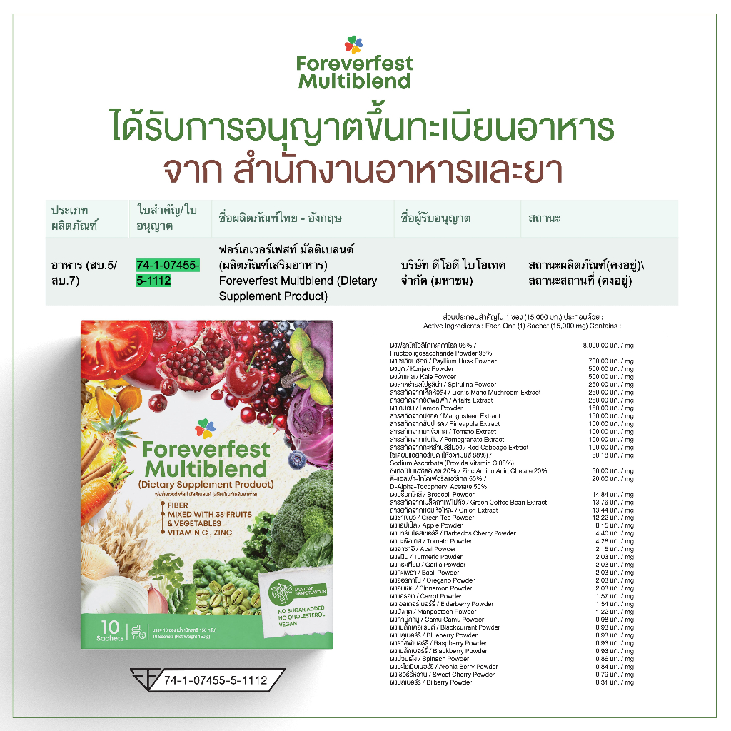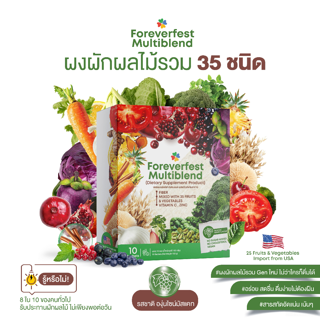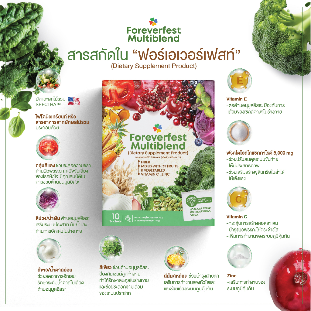 (แพ็คคู่) ผงผักผลไม้ 35ชนิด 5 สี ไฟเบอร์สูง,ไม่เติมน้ำตาล รสองุ่นมัสแคท - Foreverfest Multiblend