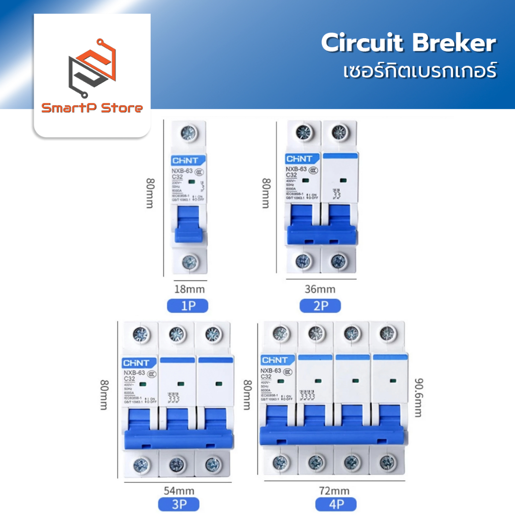 CHINT เบรกเกอร์ AC NXB-63 เซอร์กิตเบรกเกอร์ Circuit Breaker เบรกเกอร์ลูกย่อย 1P 2P 3P 4P
