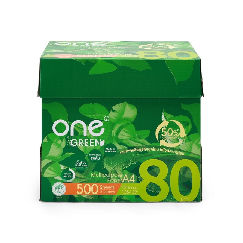 ONE GREEN กระดาษถ่ายเอกสาร 80 แกรม สีขาว ขนาด A4 (แพ็ค 5 รีม)