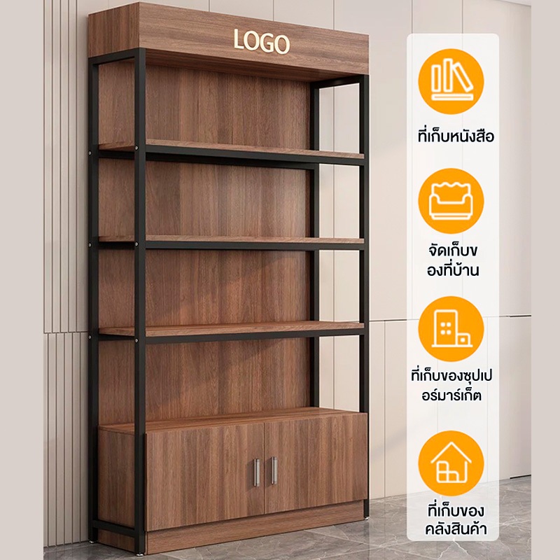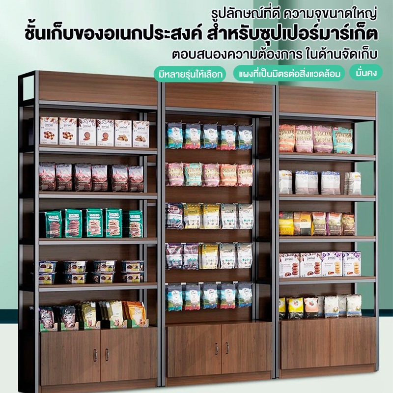 iF ชั้นวางของ ใหญ่ สแตนเลส+ไม้ 5ชั้น 300กก ตู้เก็บของ มีประตู แข็งแรงมาก ซุปเปอร์มาร์เก็ต shelf