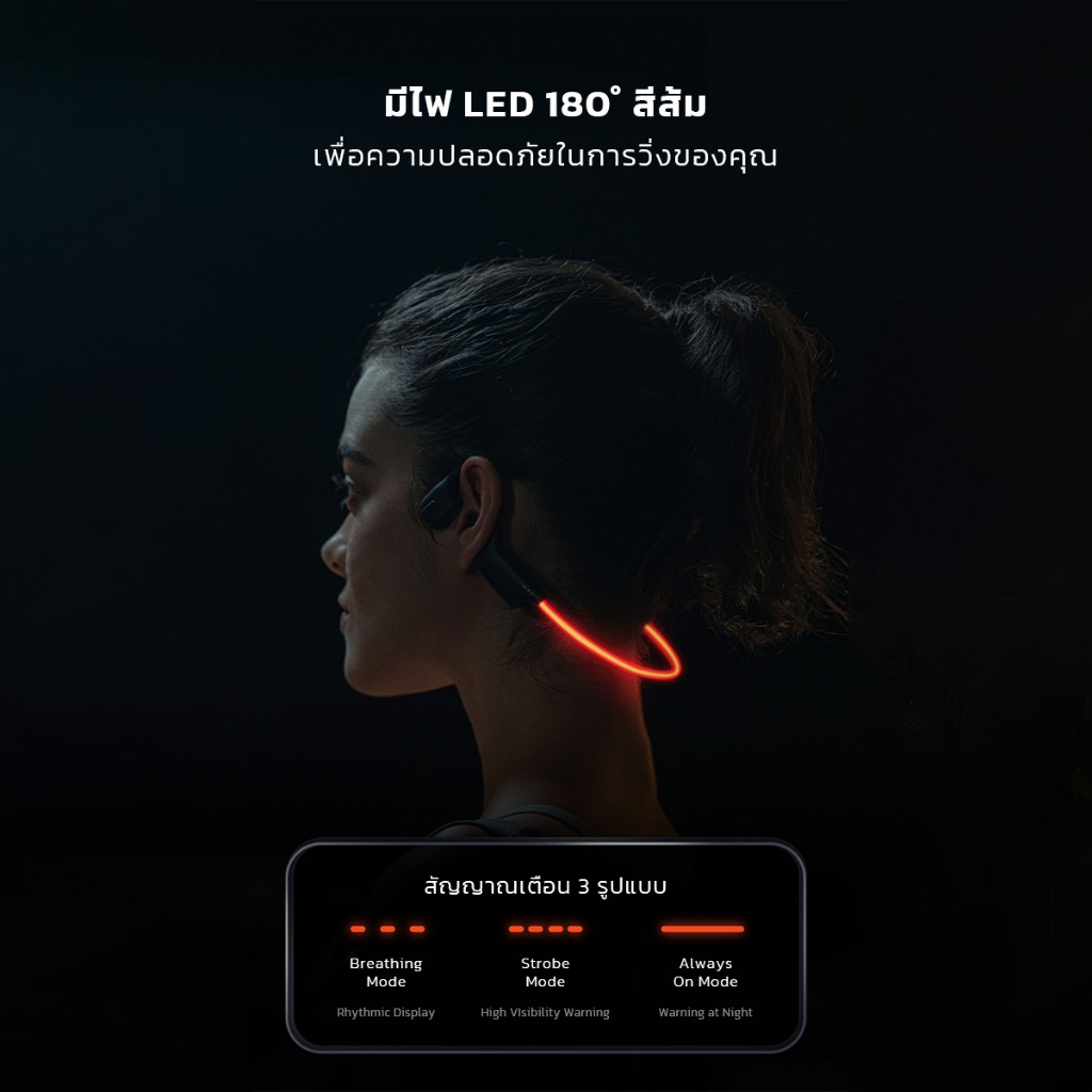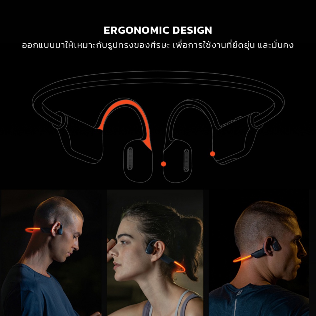 HAVIT OpenRun Pro HAKII LIGHT หูฟังไร้สาย แบบคล้องคอ สายมีไฟ LED สีส้ม มาพร้อมความจุ32GB