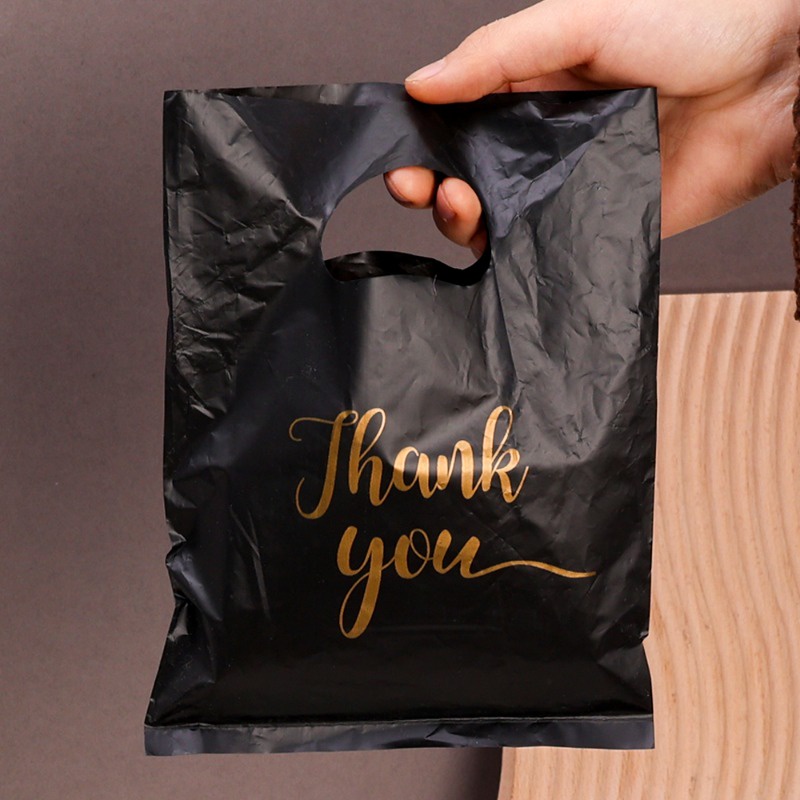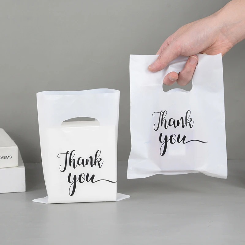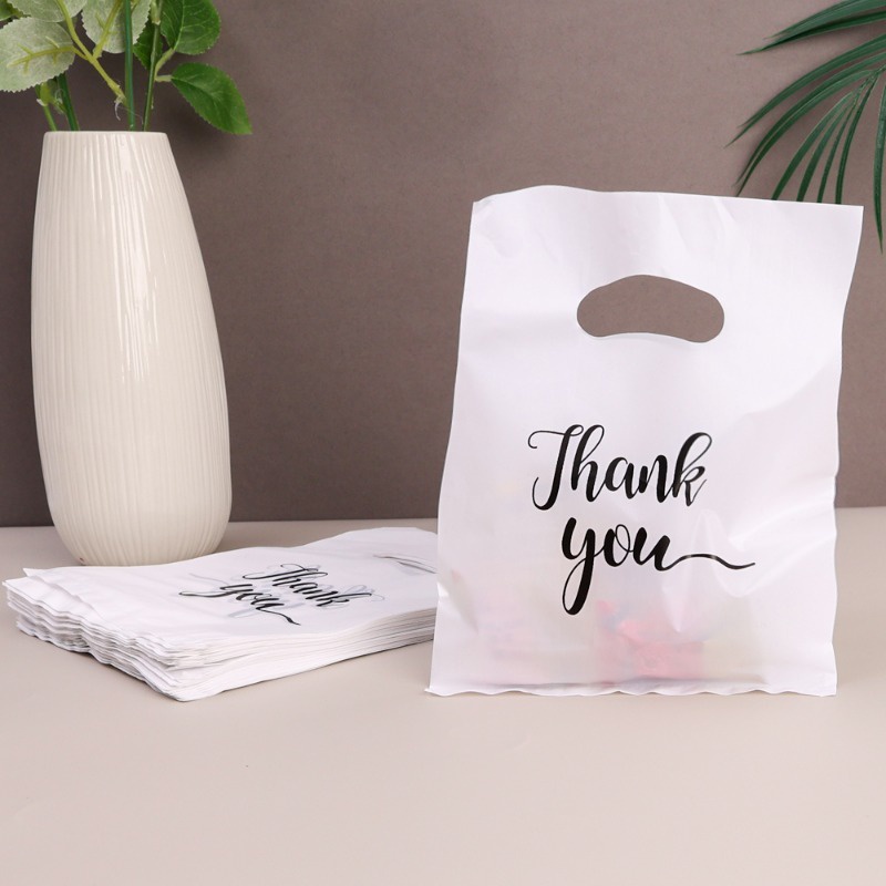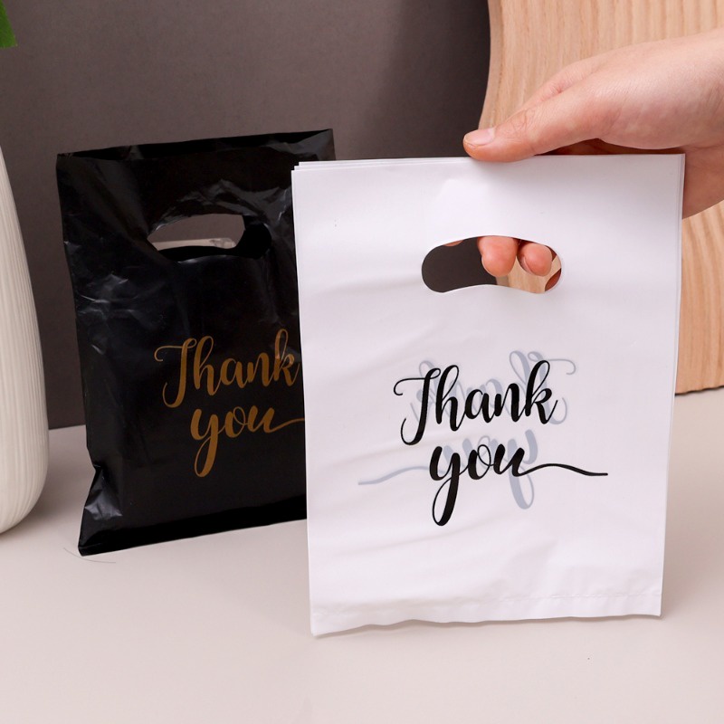 100 ชิ้น นํากลับมาใช้ใหม่ได้ พลาสติก ถุงขอบคุณ วันเกิด งานแต่งงาน ของขวัญ บรรจุภัณฑ์ สีดํา สีขาว เสื้อผ้า ถุง อุปกรณ์ตกแต่งงานปาร์ตี้