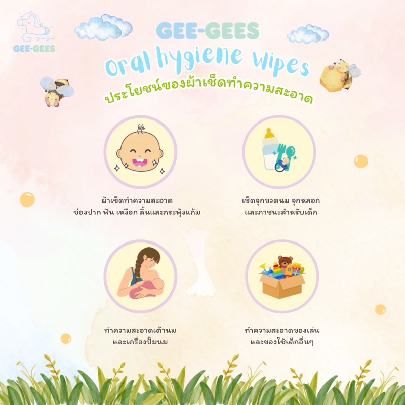(แพค 5 ห่อ) ผ้าเช็ดทำความสะอาดช่องปากฟัน เหงือก ลิ้น กระพุ้งแก้ม เด็ก ผสมสารสกัด Propolis