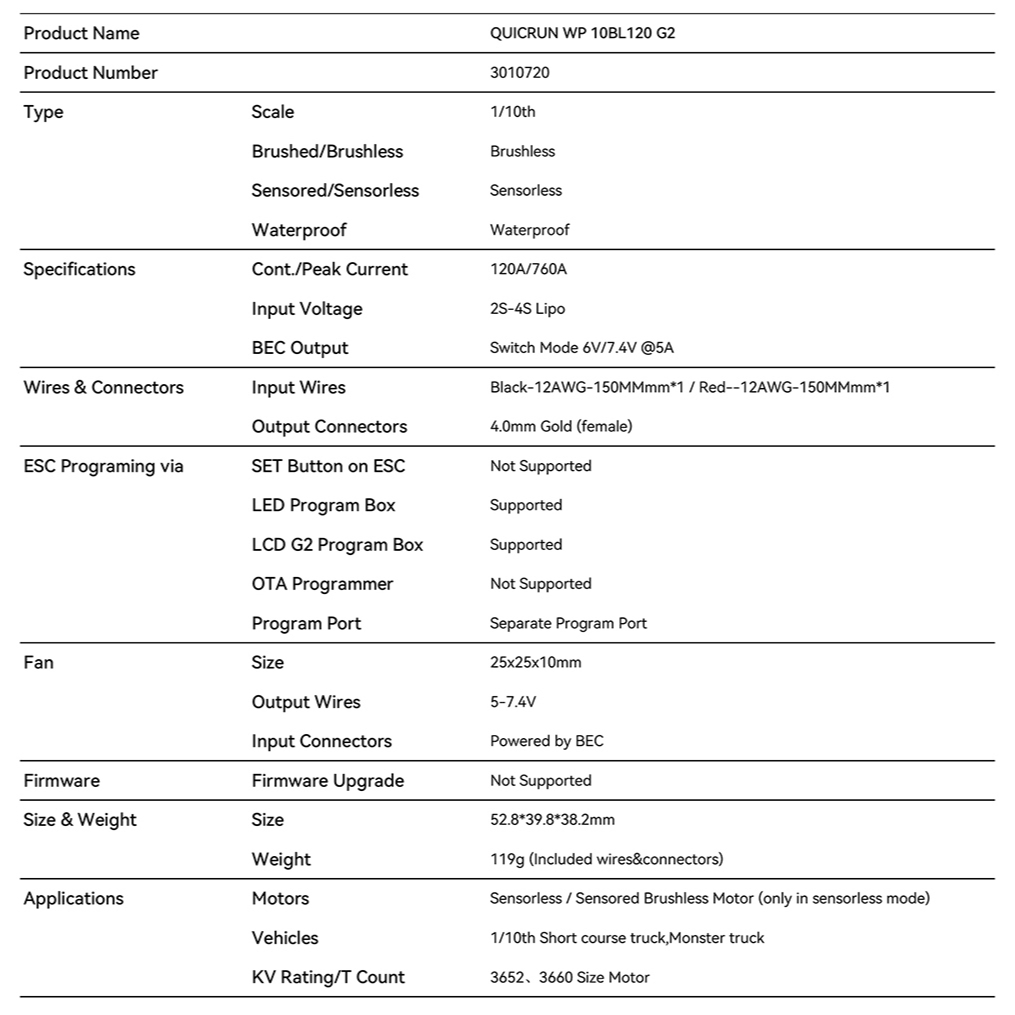 Hobbywing ESC QuicRun WP 10BL120 G2 120A ESC 3652 มอเตอร์ควบคุมความเร็ว ไร้แปรงถ่าน กันน้ํา 1/10