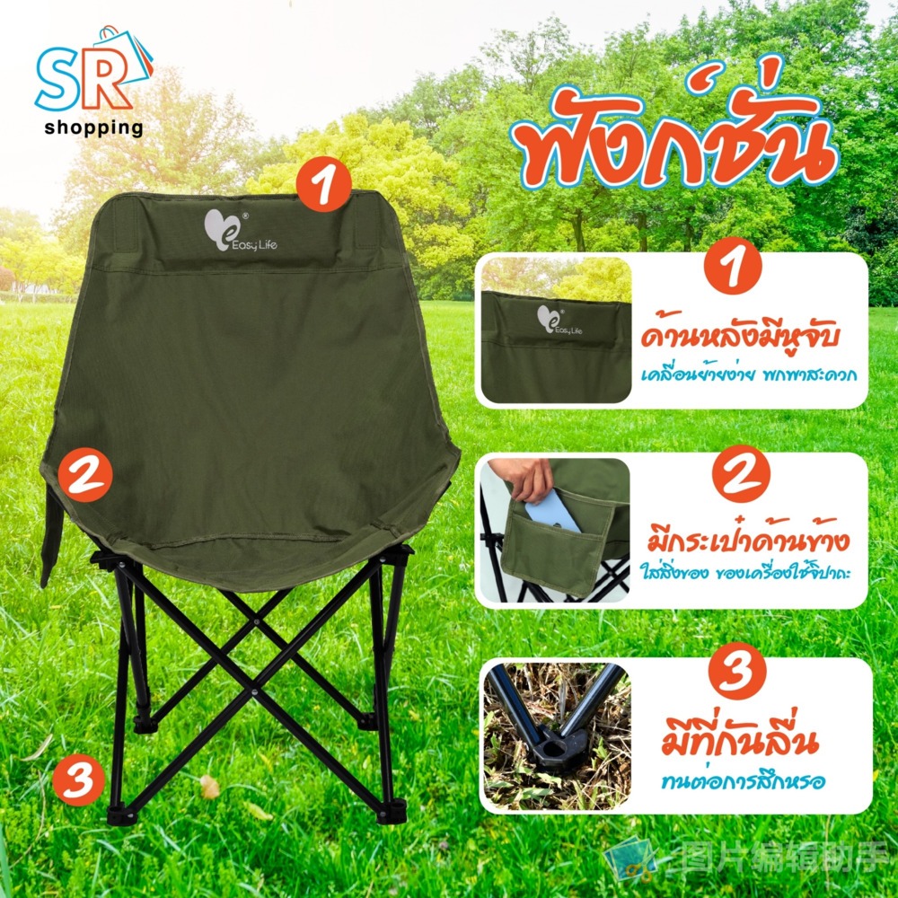 เก้าอี้แคมป์ปิ้งพนักพิงสูง 4สี เก้าอี้สนามพับได้ เก้าอี้แบบพกพา เก้าอี้พับเก็บได้ ผ้าอ็อกซ์ฟอร์ด กันน้ำ รับน้ำหนักได้เยอ