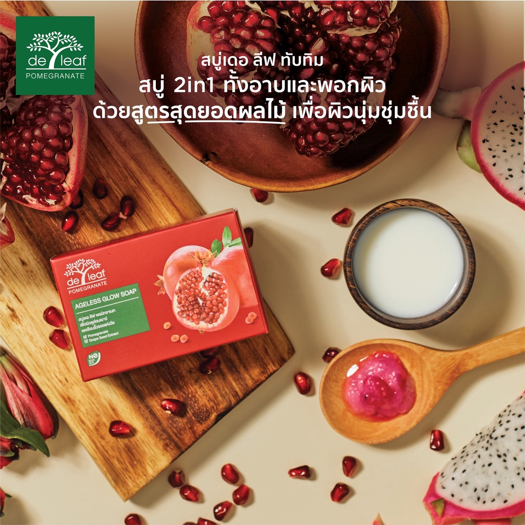 De Leaf Thanaka Pomegranate Ageless Glow Soap สบู่ทับทิม เดอ ลีฟ พอมิกราเนท 100กรัม ลดริ้วรอย (12 ก้อน) SPT-PS419 (12 P)