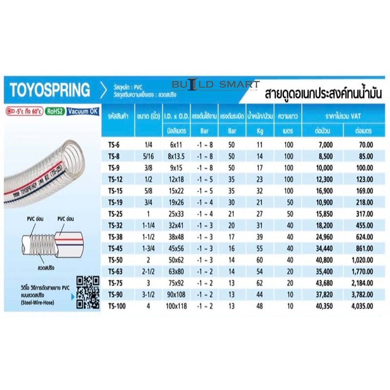 TOYOX สายยาง ใยลวด TOYOSPRING TS 1 "- 1.1/2 " สายดูด น้ำมัน แรงดันหม้อน้ำ ทนความร้อน 60 องศา