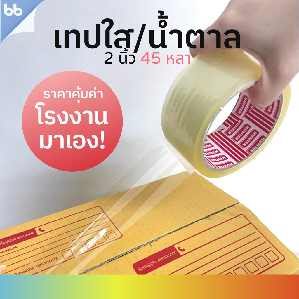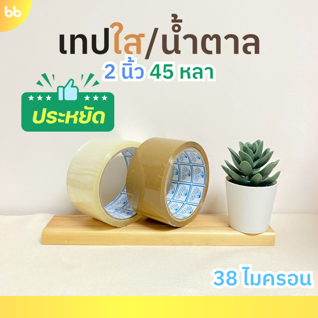 เทปใส/เทปน้ำตาล(ม้วน) 2 นิ้ว 45 หลา 5 รุ่น 38,40,43,45,50 ไมครอน OPP tape ปิดกล่อง ติดกล่อง เทปขุ่น