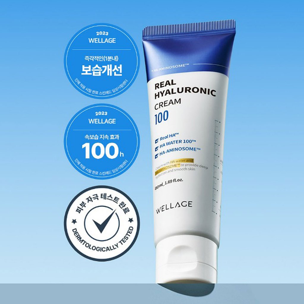 (READY TO SHIP) [WELLAGE] Real Hyaluronic 100 Cream 80ml_จากเกาหลี