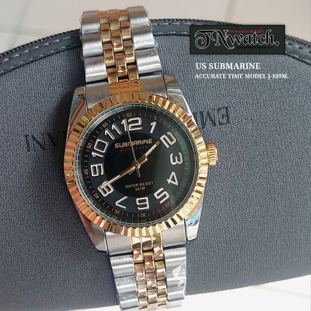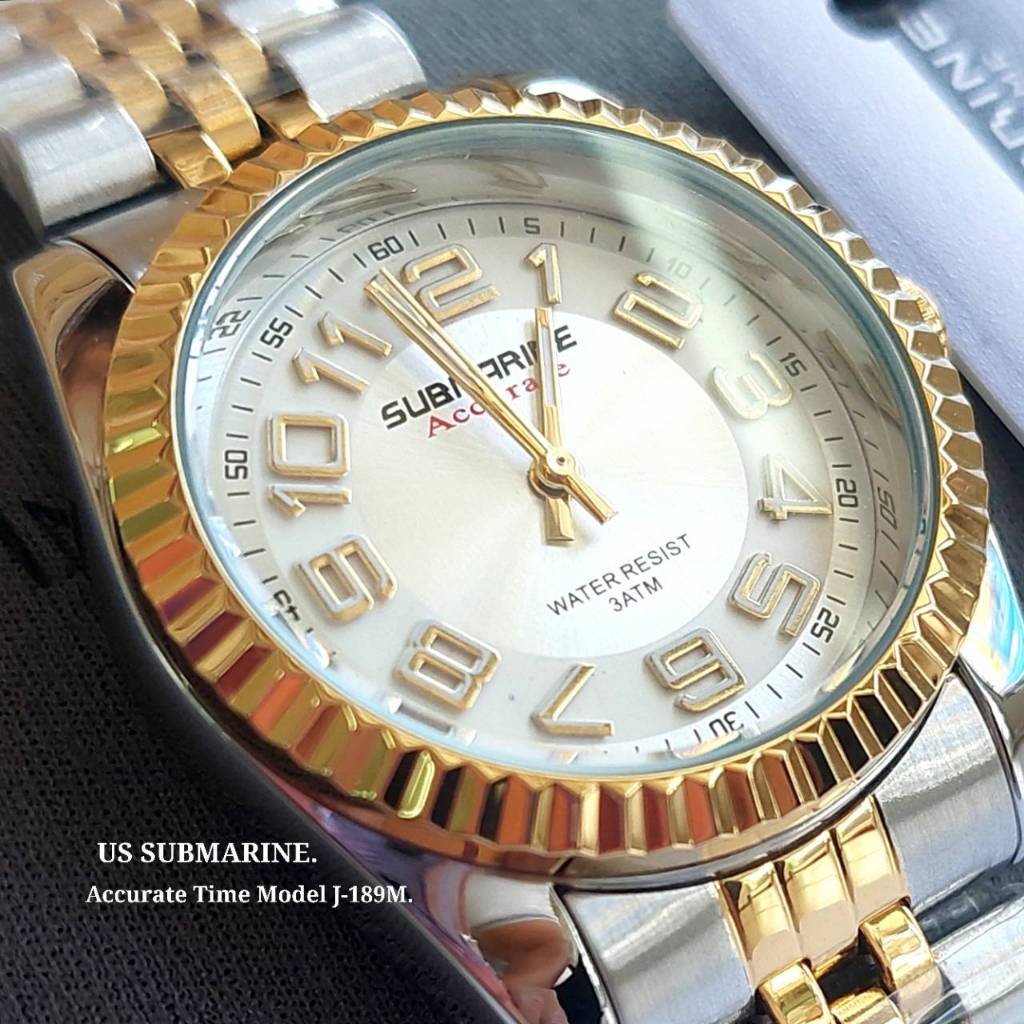 US SUBMARINE รุ่น J-189m นาฬิกาผู้ชาย นาฬิกาข้อมือสายเหล็ก สีเงิน เครื่องควอตซ์ กันน้ำ100%