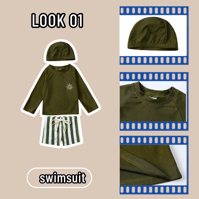 3ชิ้น เด็กชุดว่ายน้ําครีมกันแดดพร้อมสต็อกโพลีเอสเตอร์ว่ายน้ําสูทเด็กสาวแขนยาวด้านบน+กางเกง+หมวกสูท
