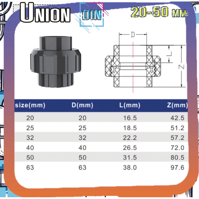 ข้อต่อยูเนียนแบบสวม Sanking Union ยูเนียนสวม 20-50 mm U PVC งานตู้ปลาและทั่วไป