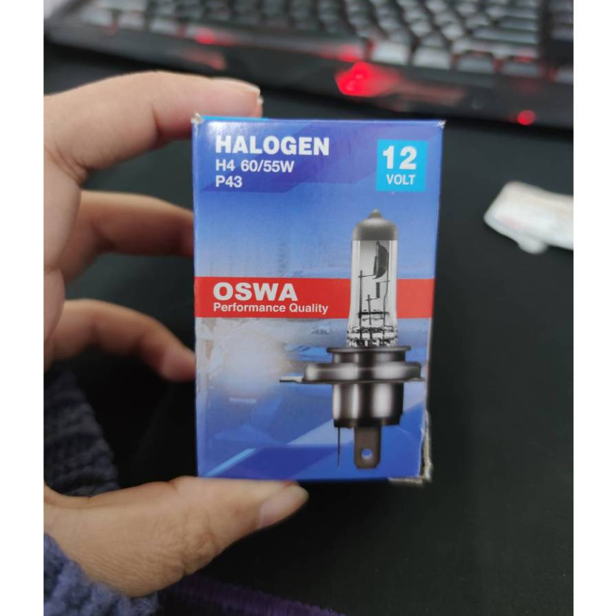 (10 ดวง) Oswa หลอดไฟหน้า ฮาโลเจน 3ขา H4 12V Halogen (60/55W) สำหรับรถยนต์ทั่วไป