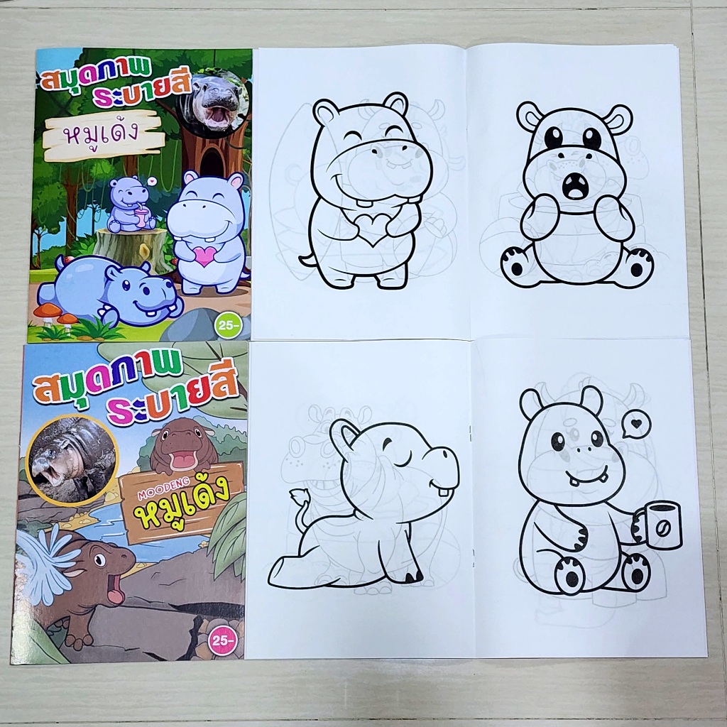 สมุดระบายสี (1เล่ม) เล่มใหญ่ หมูเด้ง ลากเส้นต่อจุด ตัวเลข เจ้าหญิง Crybaby Care Bear Avengers Minecraft Roblox