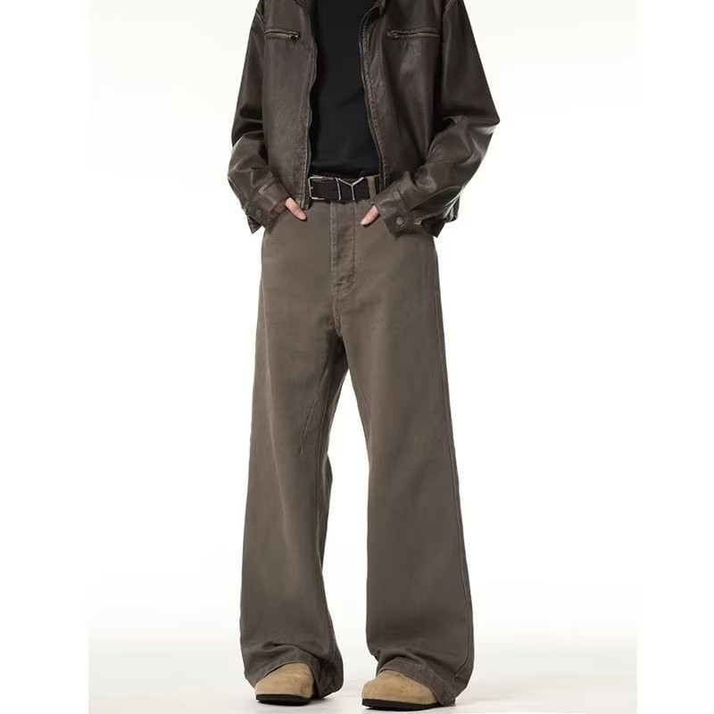 SEACHENIC กางเกงยีนขายาว เอวสูง ทรงตรง ทรงหลวม สีกาแฟ สไตล์เรโทร สําหรับผู้ชาย